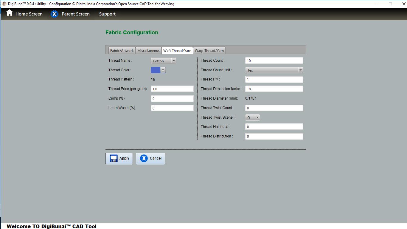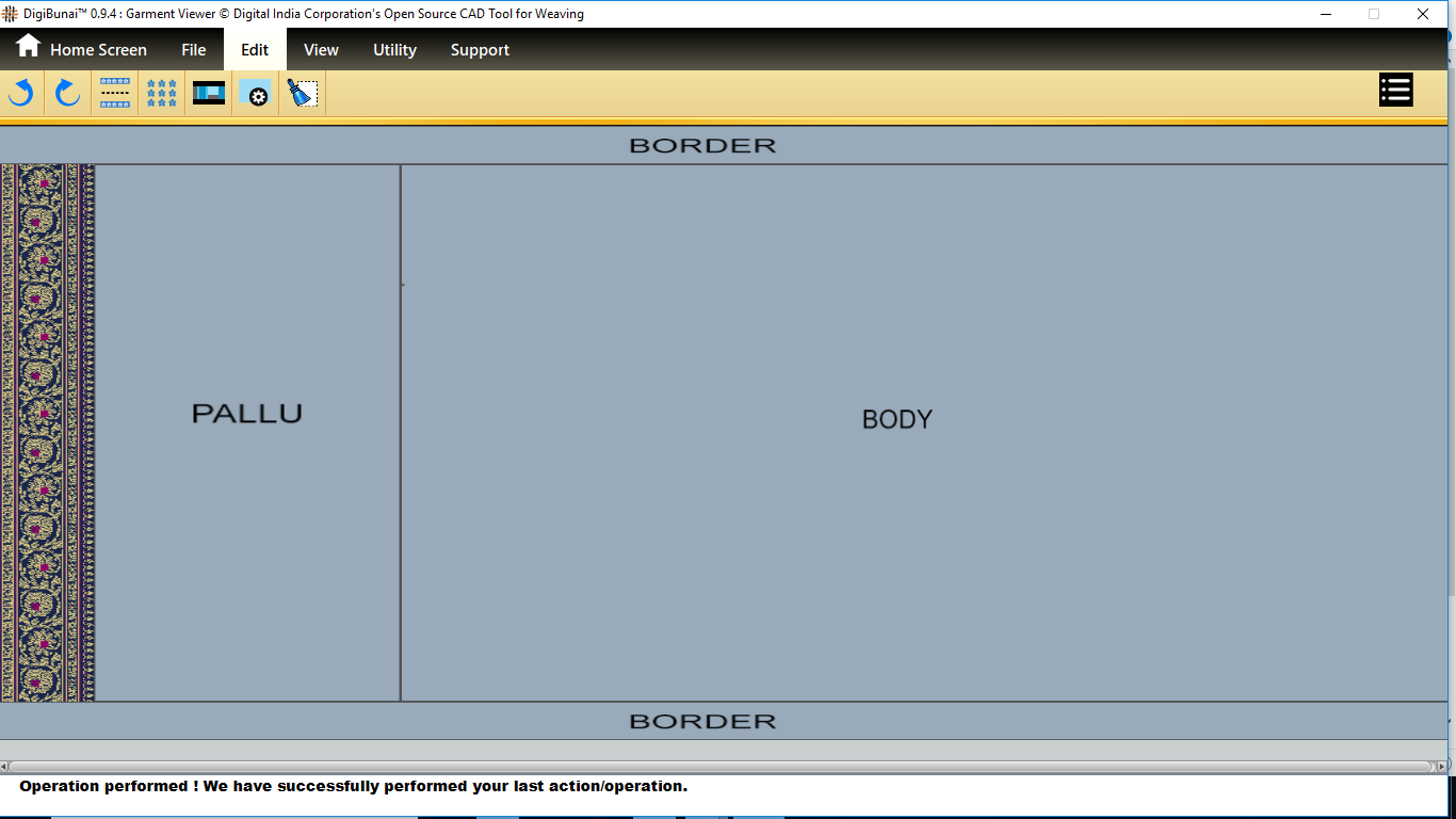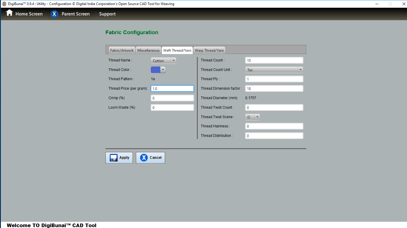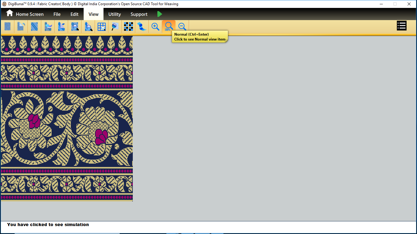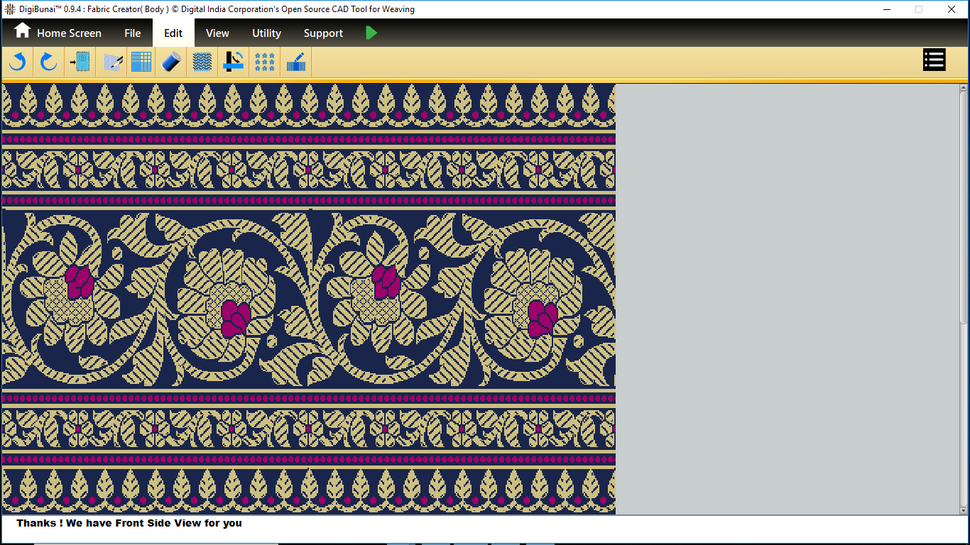Utility provides facility Export/ Import ( Artwork, Fabric , Weave, Color, Yarn, Cloth), translator, simulator, Palette, Artwork / Fabric Configuration , third party software integration and Help support .