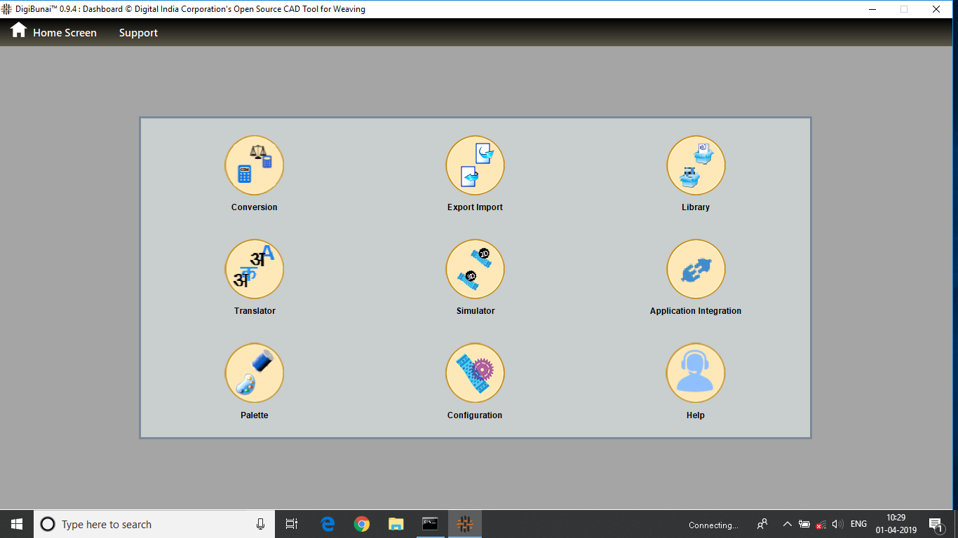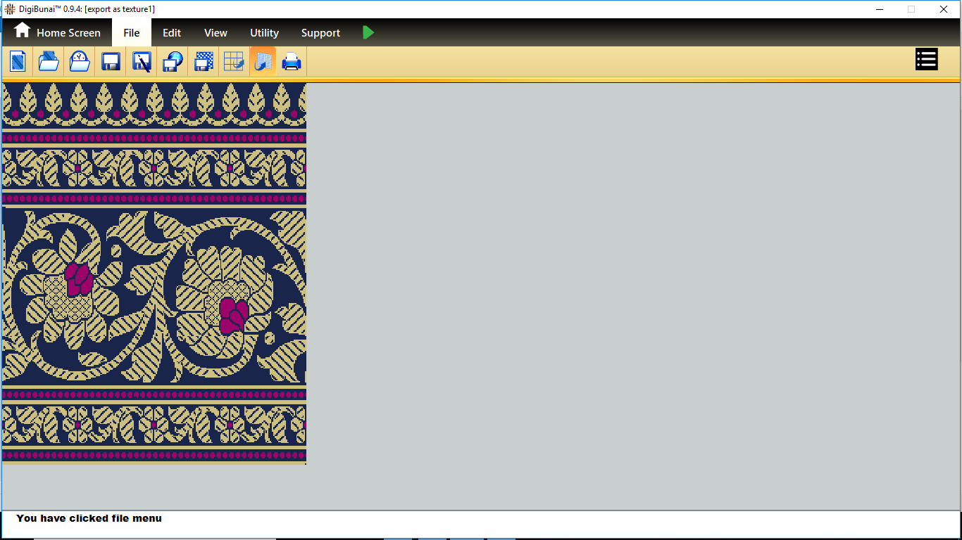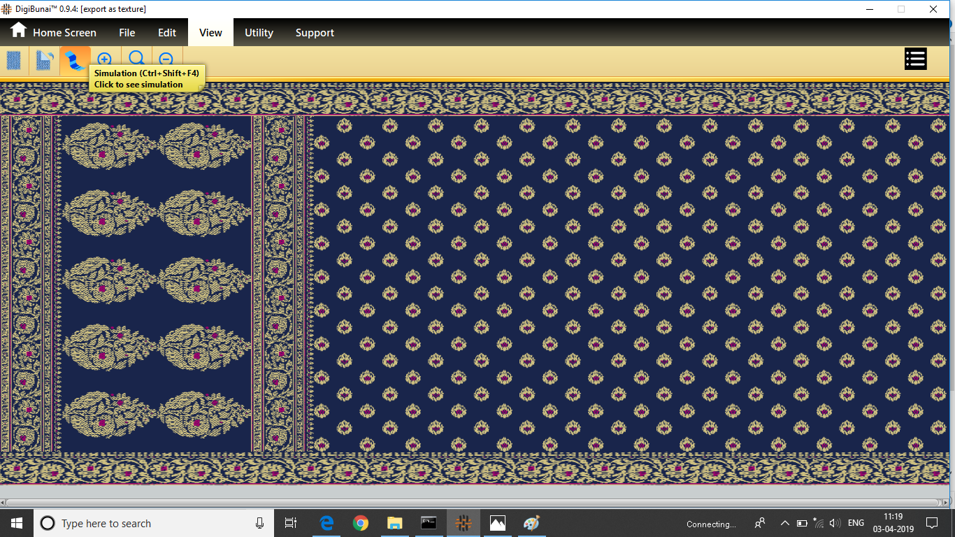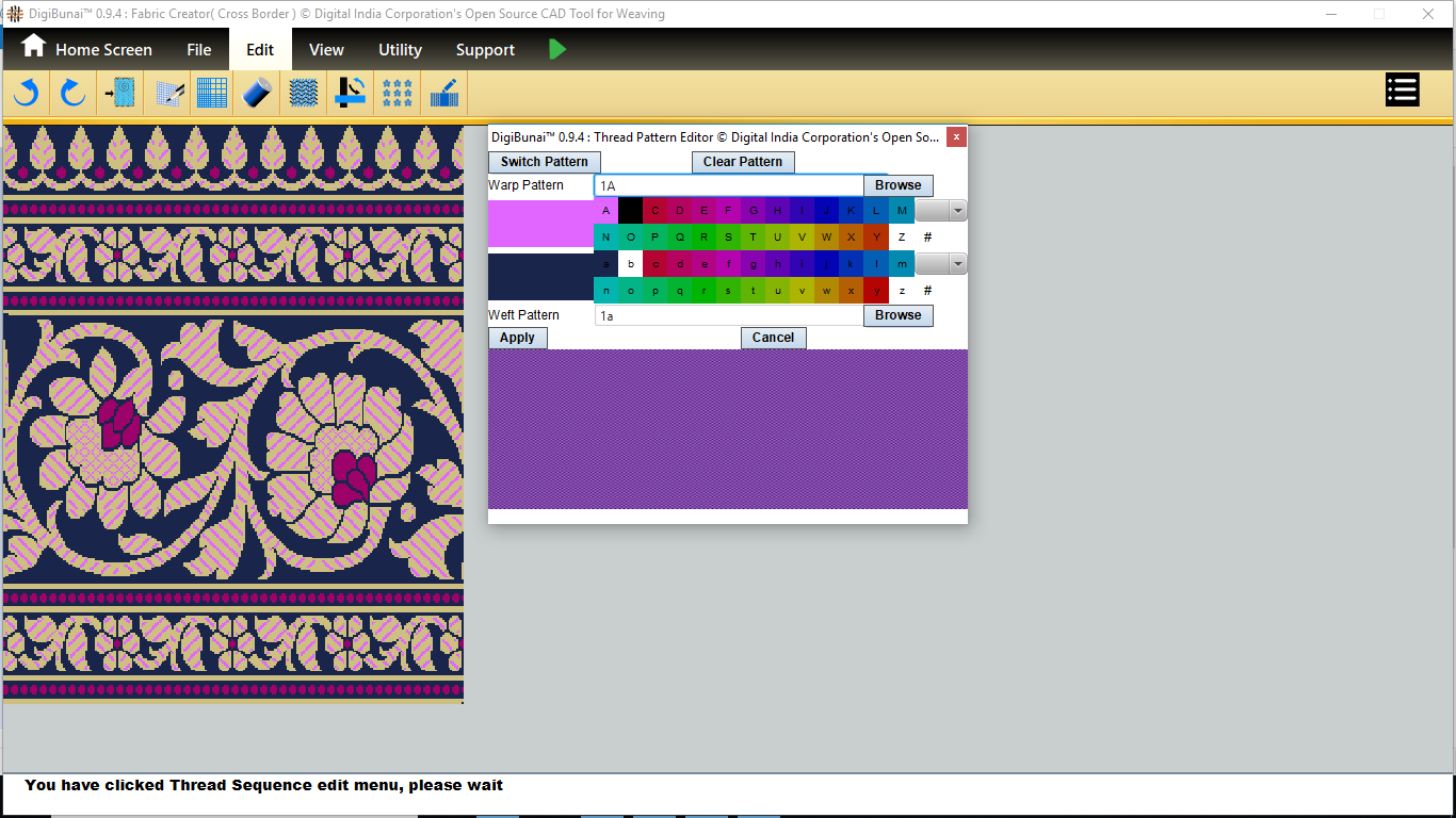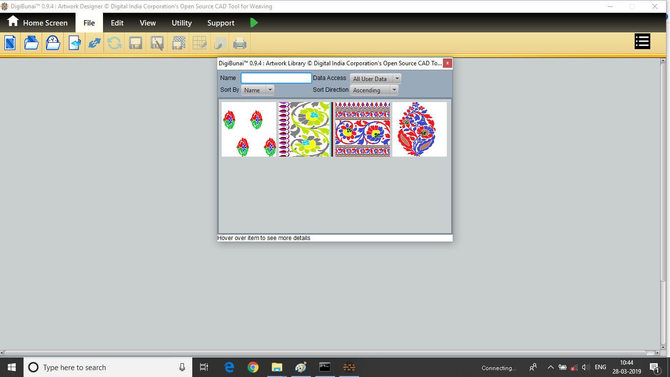 Utility provides facility Export/ Import ( Artwork, Fabric , Weave, Color, Yarn, Cloth), translator, simulator, Palette, Artwork / Fabric Configuration , third party software integration and Help support .
