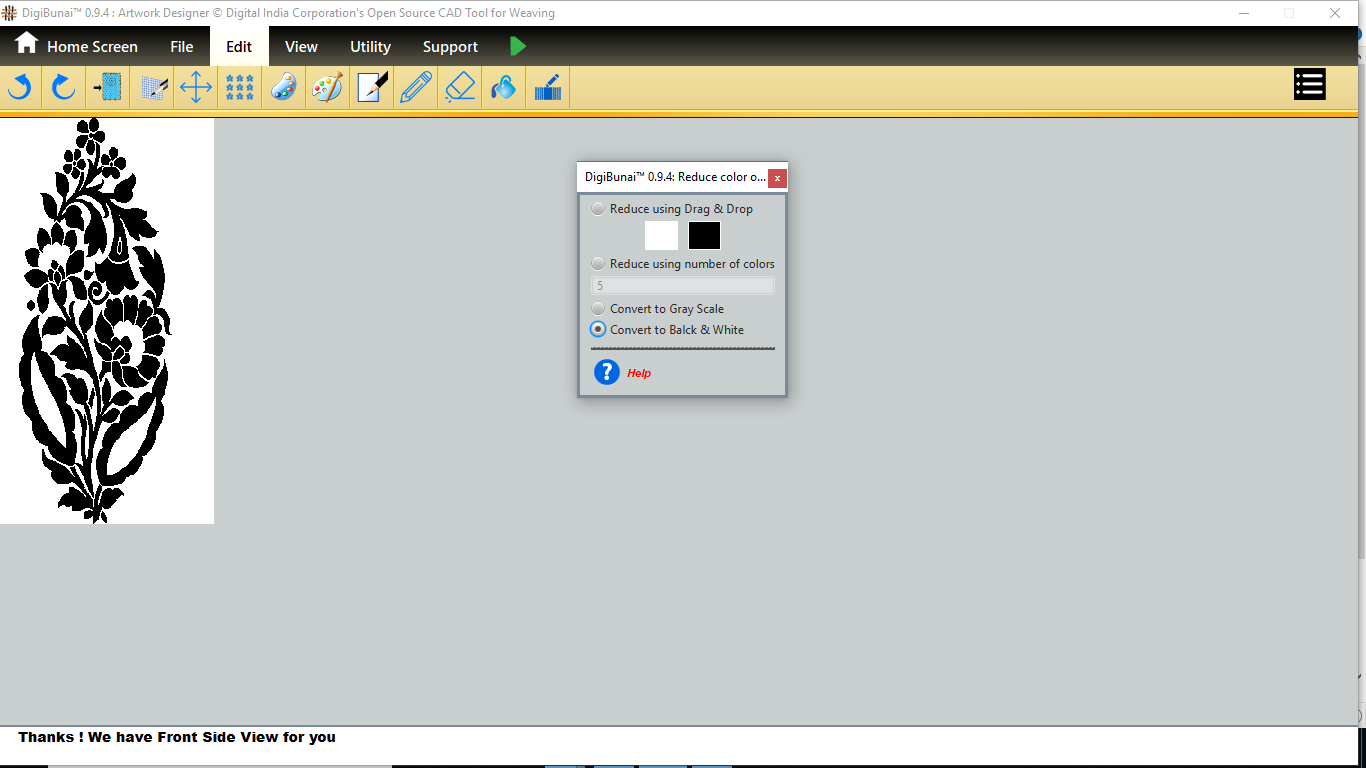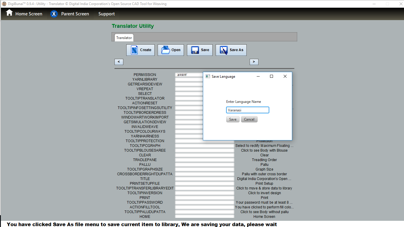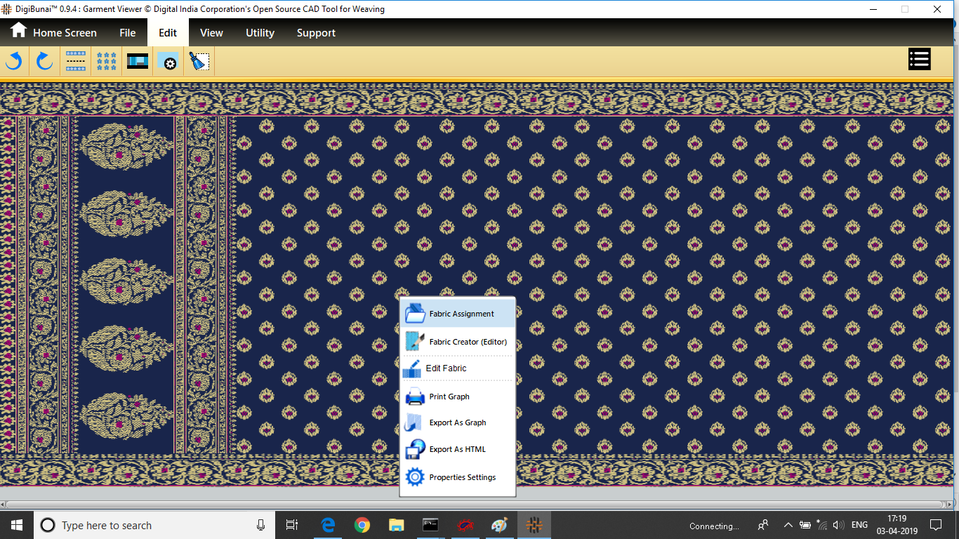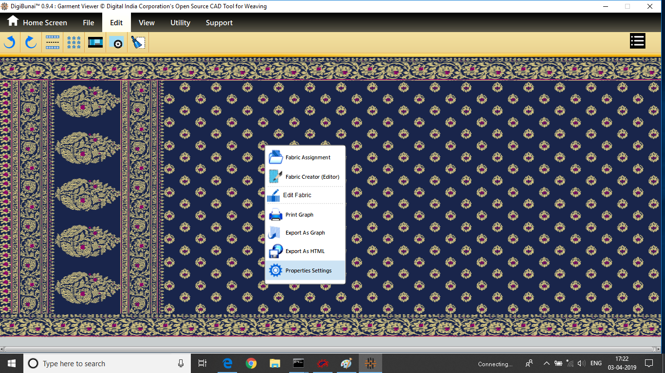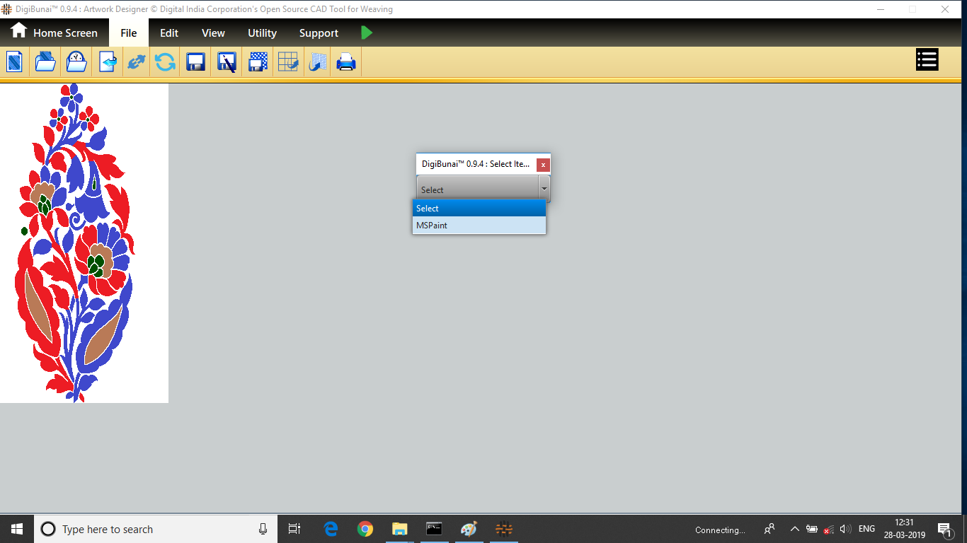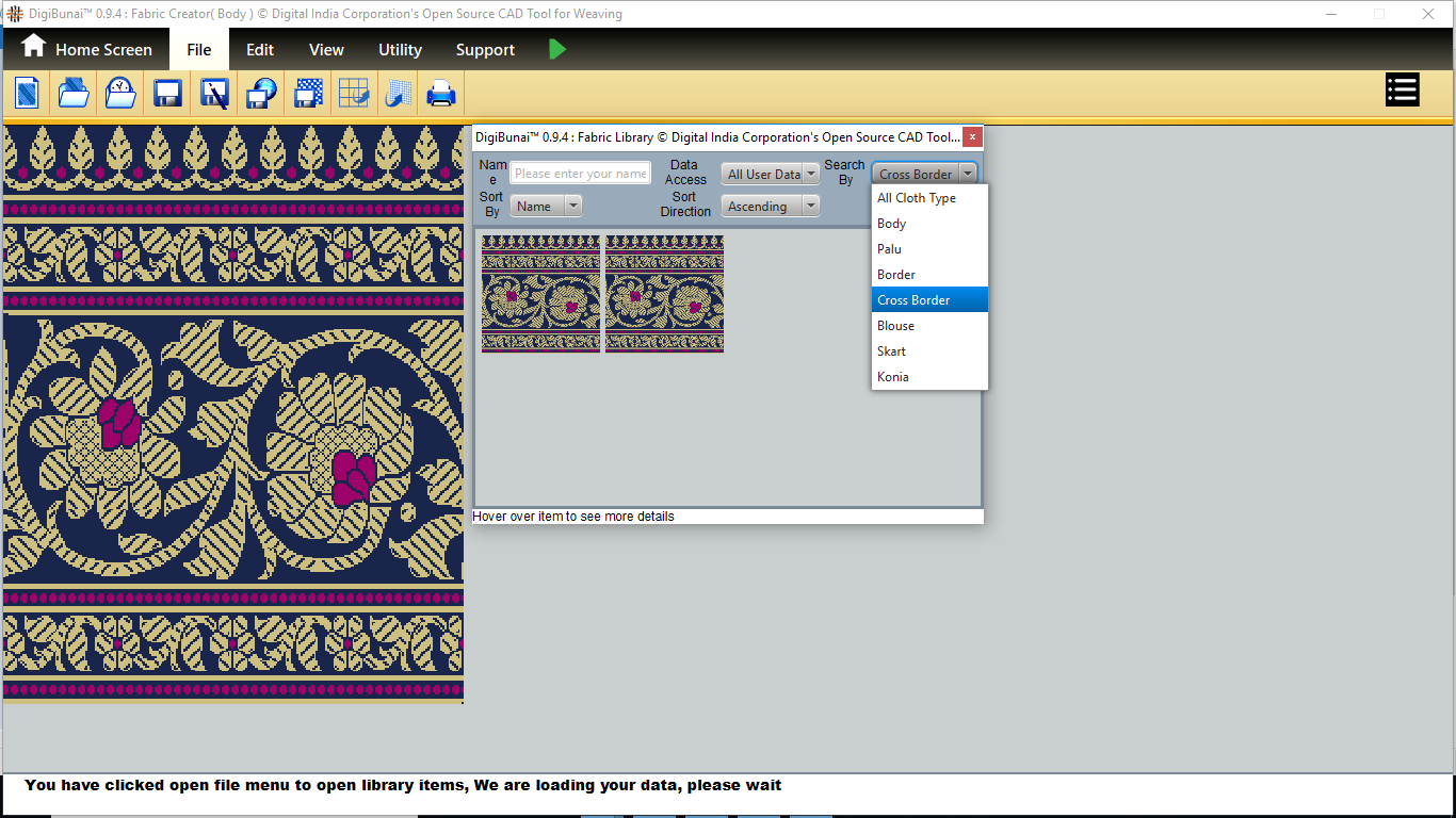 Utility provides facility Export/ Import ( Artwork, Fabric , Weave, Color, Yarn, Cloth), translator, simulator, Palette, Artwork / Fabric Configuration , third party software integration and Help support .