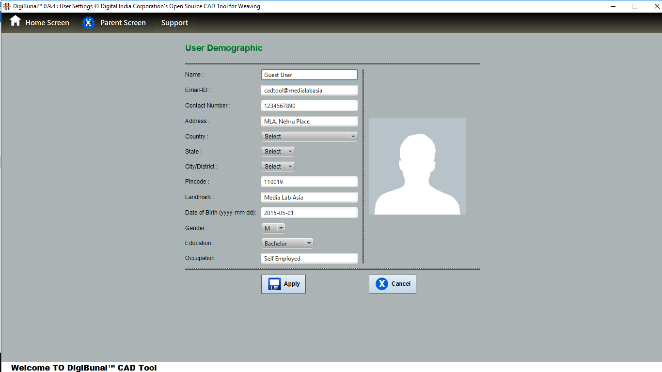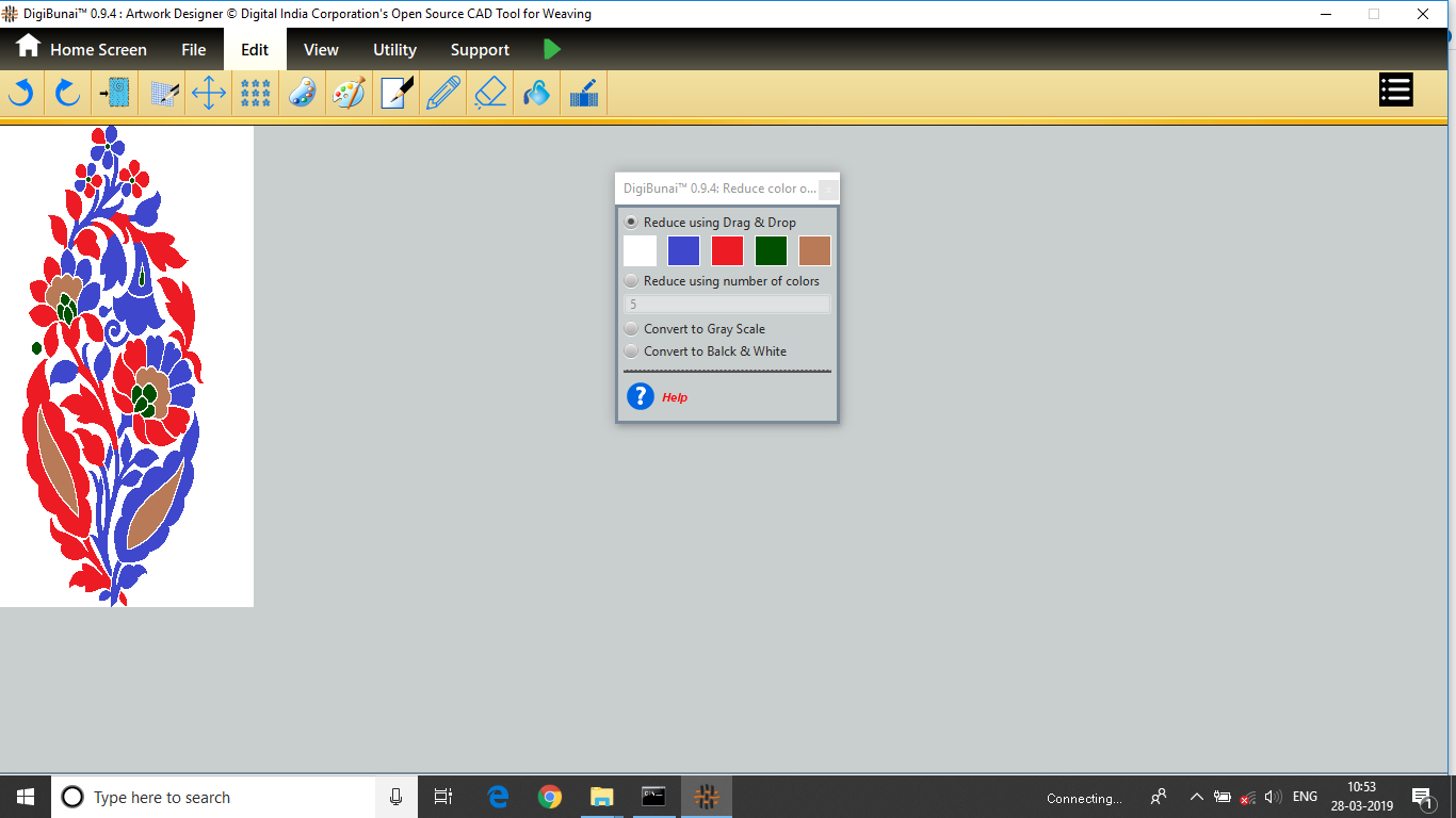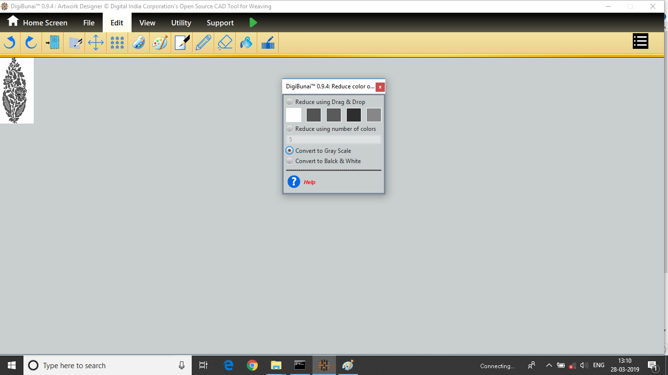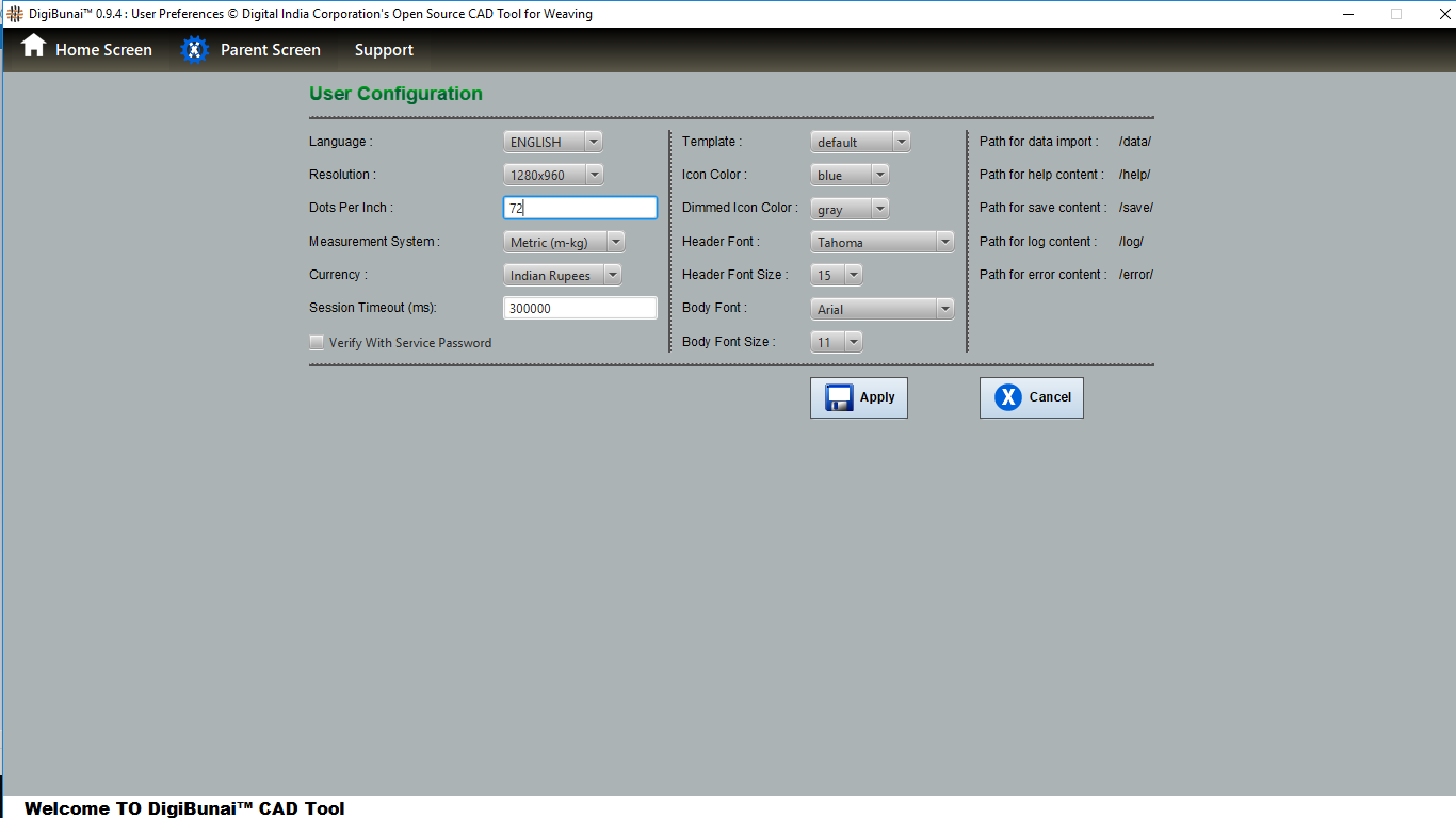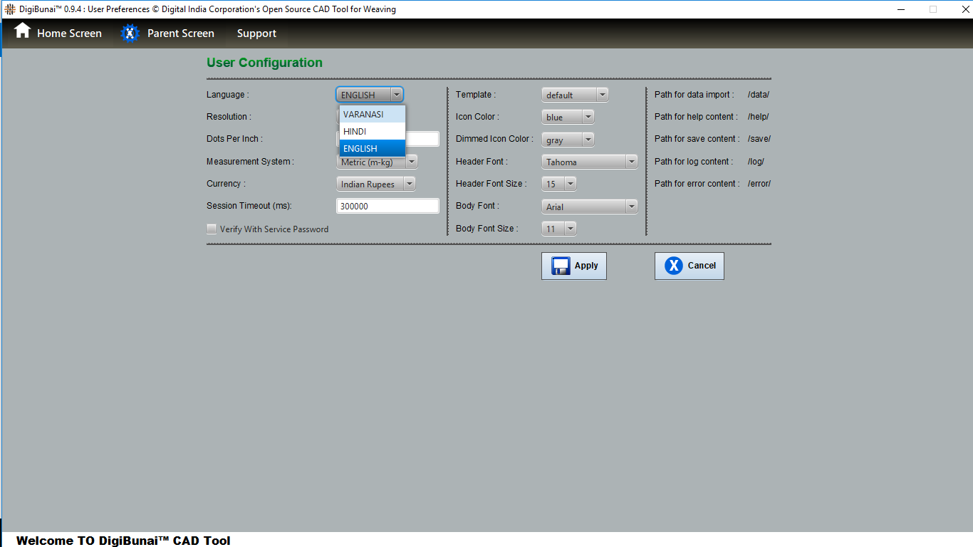 Utility provides facility Export/ Import ( Artwork, Fabric , Weave, Color, Yarn, Cloth), translator, simulator, Palette, Artwork / Fabric Configuration , third party software integration and Help support .