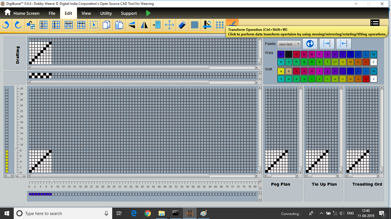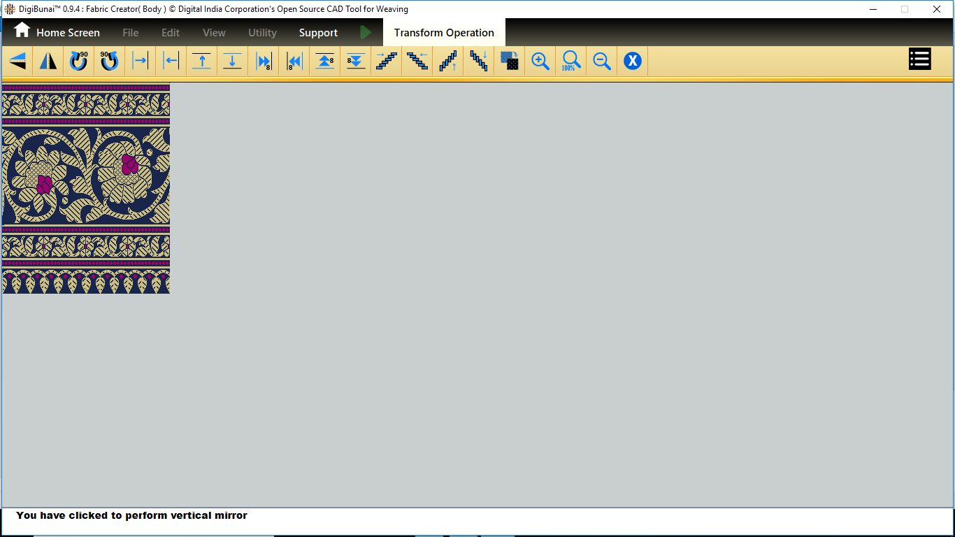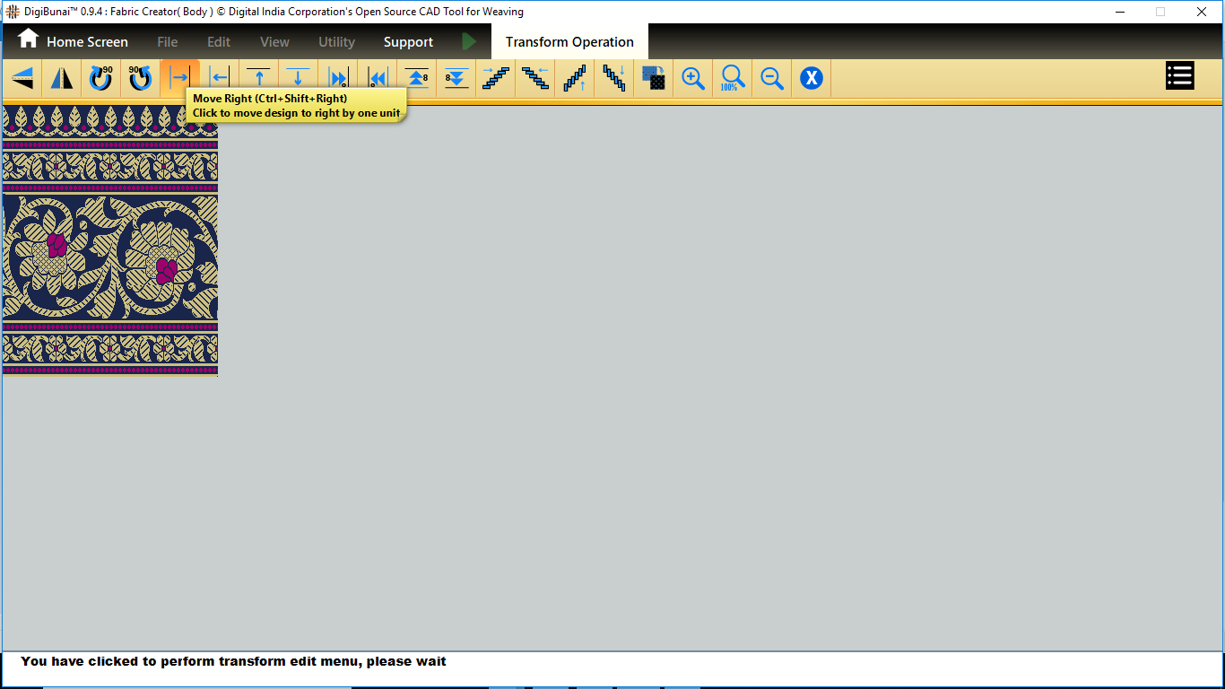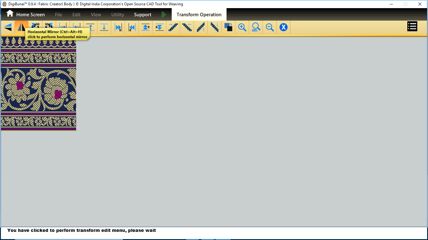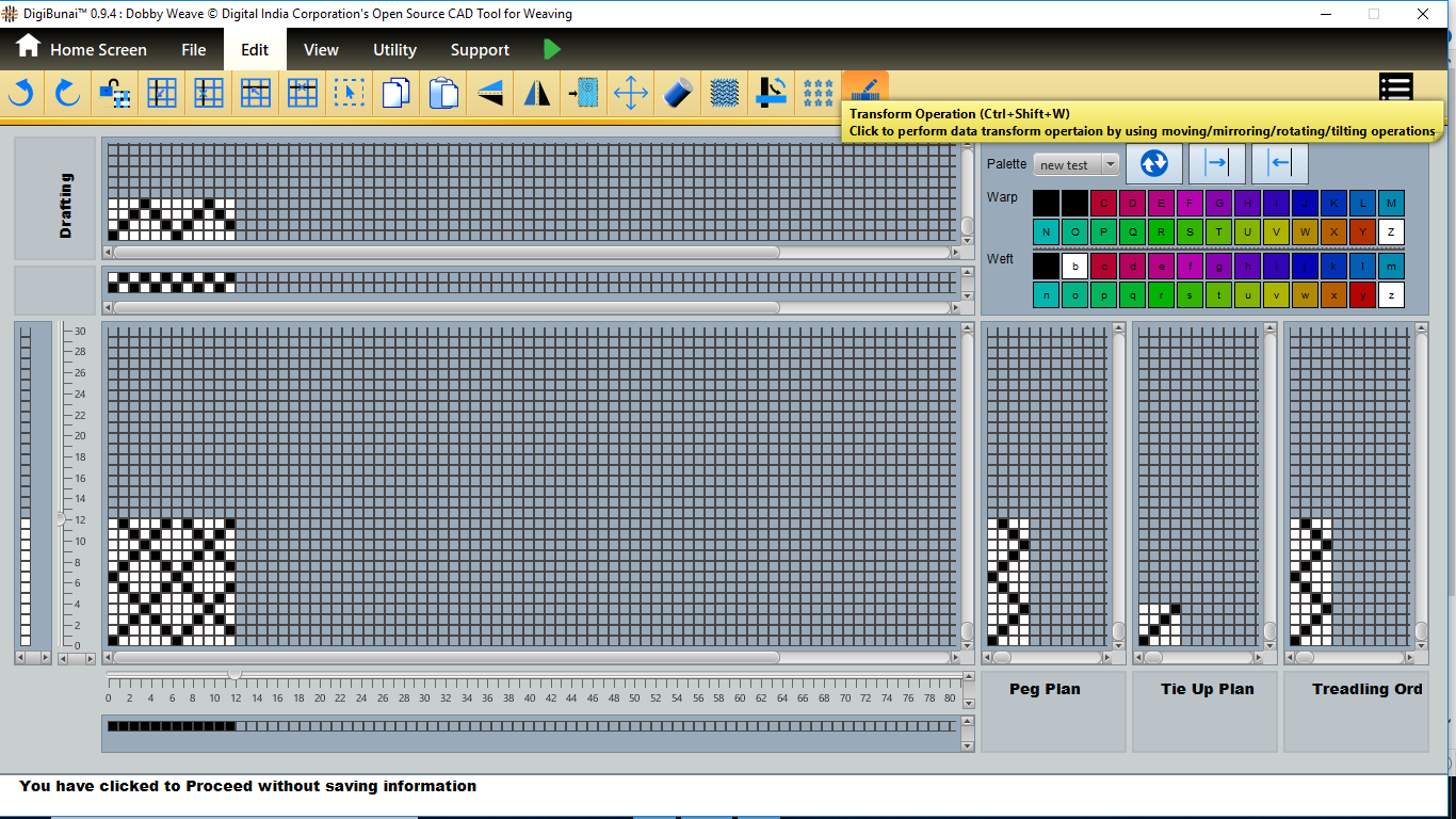 User want to transform operation (vertical / horizontal mirror, colockwise rotation/ anticlockwise rotation, move left, move right, move up, move down, tilt left, tilt right, tilt up, tilt down, inversion, clear,zoomin, zoom out, normal etc ) in Edit menu under Dobby Weave.