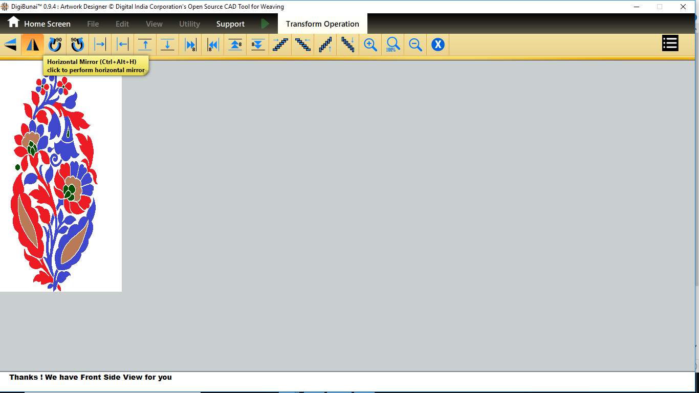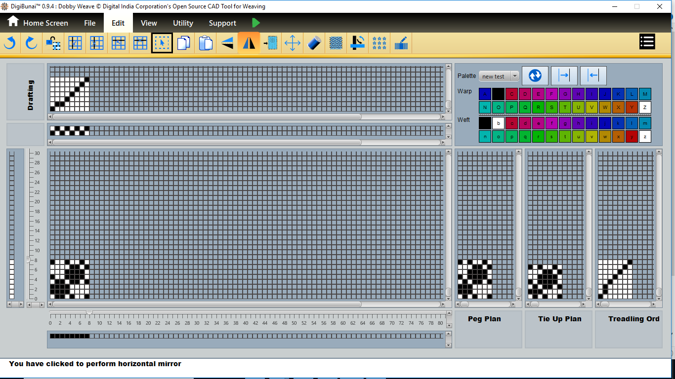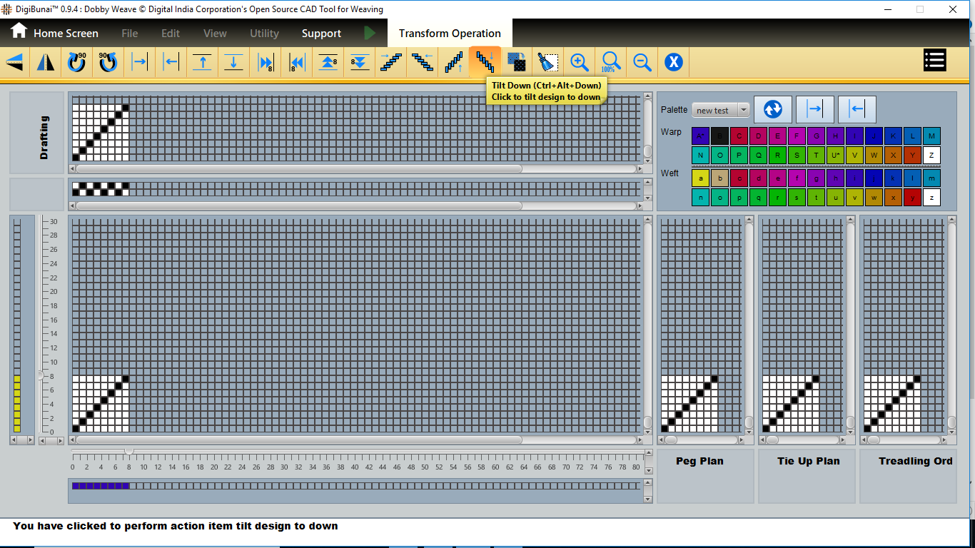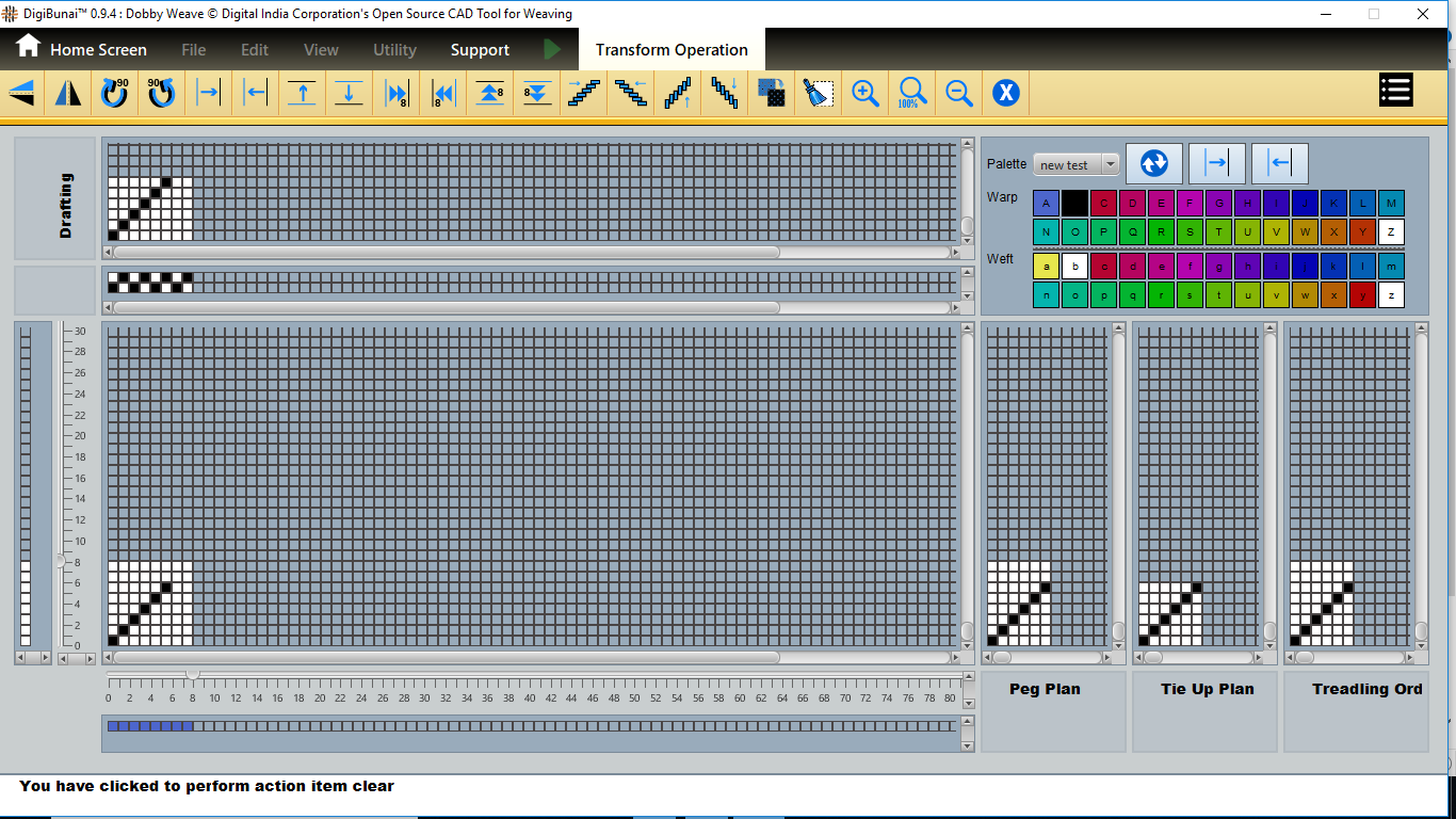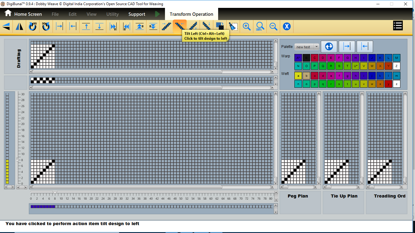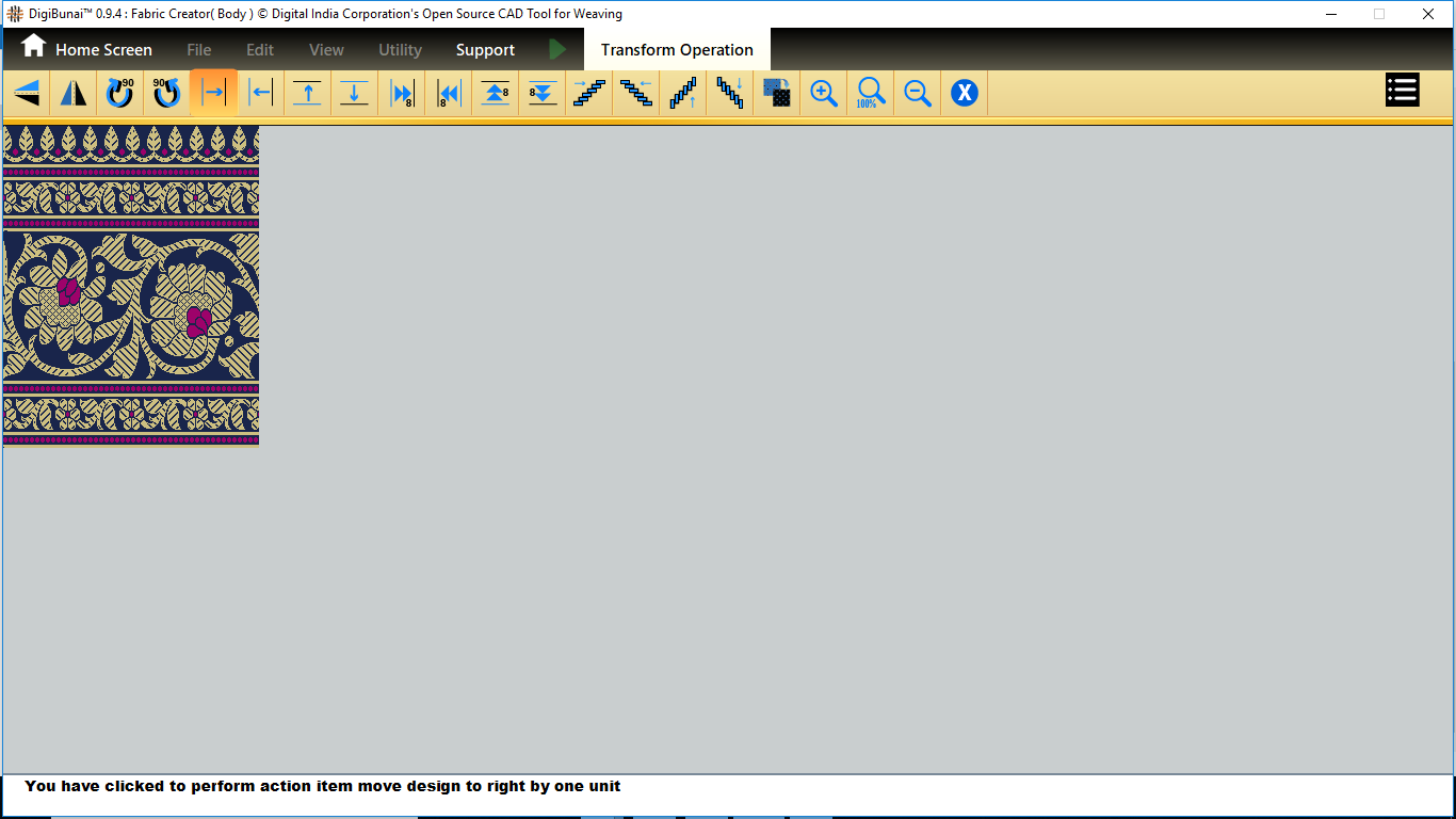 User want to transform operation (vertical / horizontal mirror, colockwise rotation/ anticlockwise rotation, move left, move right, move up, move down, tilt left, tilt right, tilt up, tilt down, inversion, clear,zoomin, zoom out, normal etc ) in Edit menu under Dobby Weave.