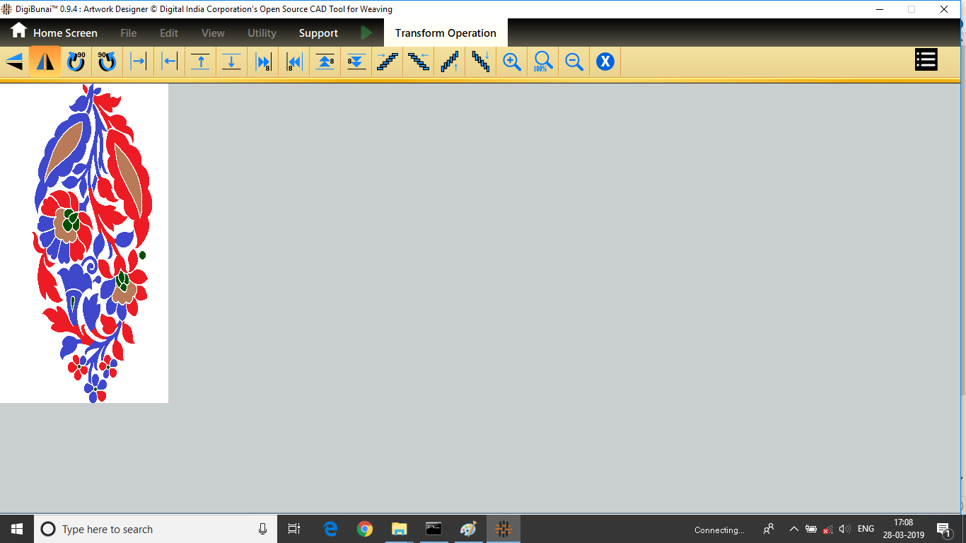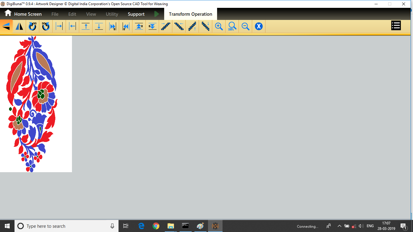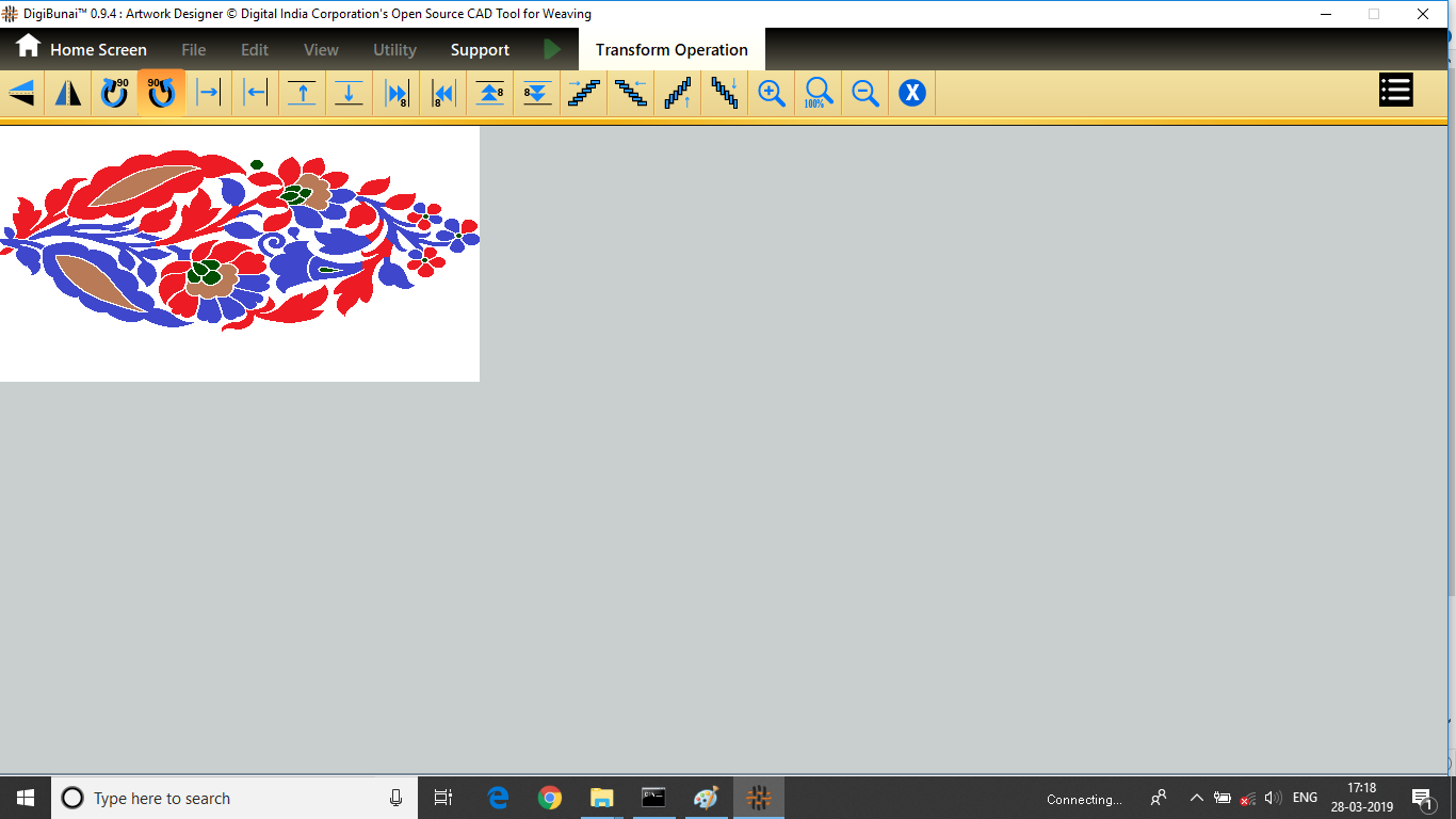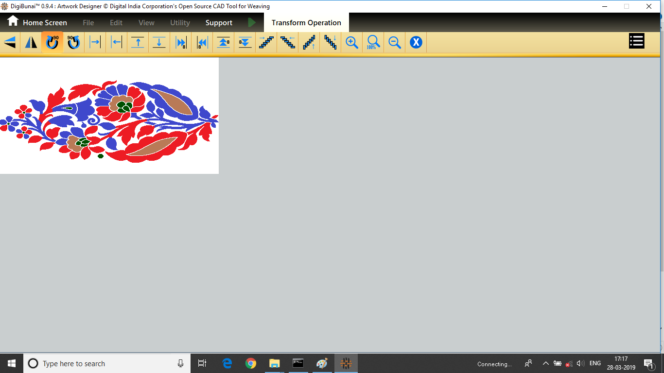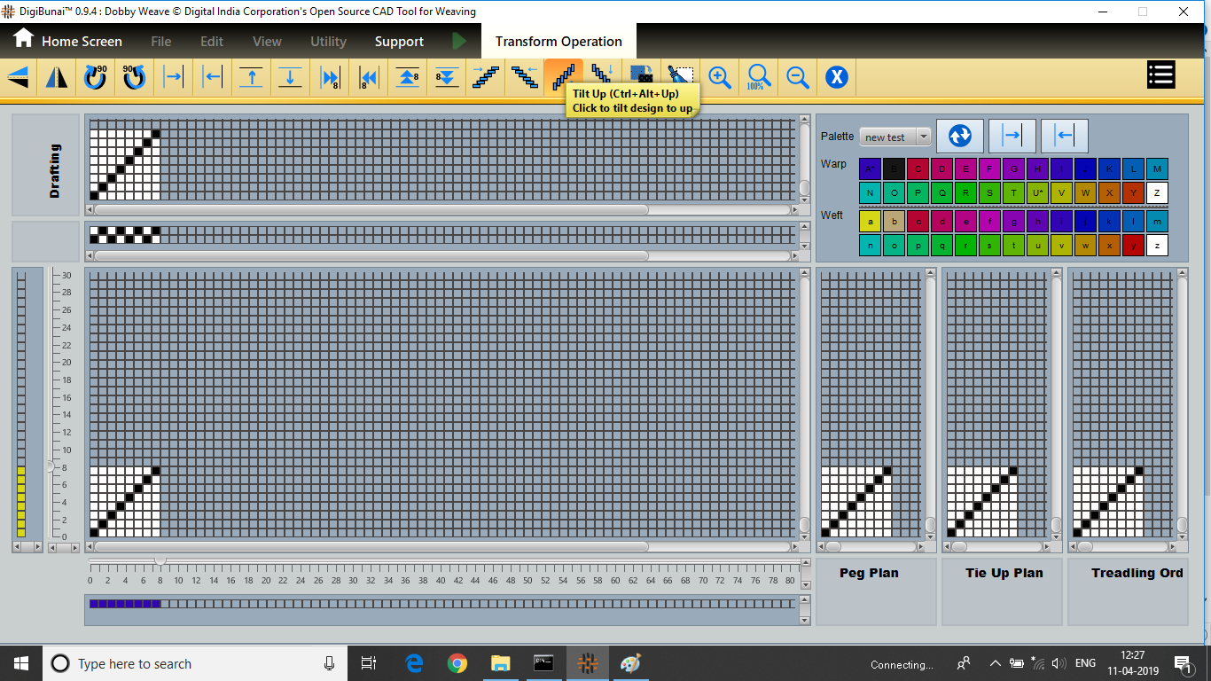 User want to transform operation (vertical / horizontal mirror, colockwise rotation/ anticlockwise rotation, move left, move right, move up, move down, tilt left, tilt right, tilt up, tilt down, inversion, clear,zoomin, zoom out, normal etc ) in Edit menu under Dobby Weave.