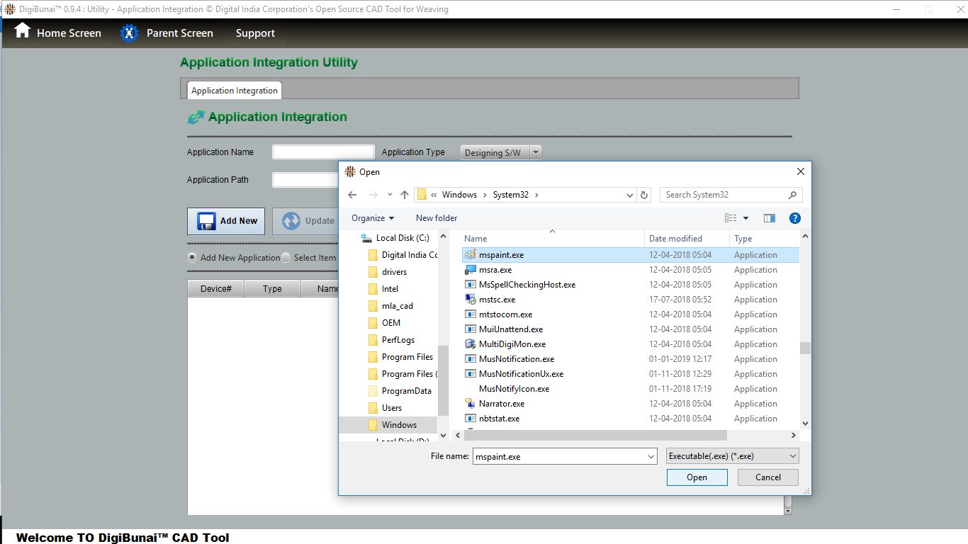 User interested in integrating 3rd Party software by clicking browse button in application integration under utility.