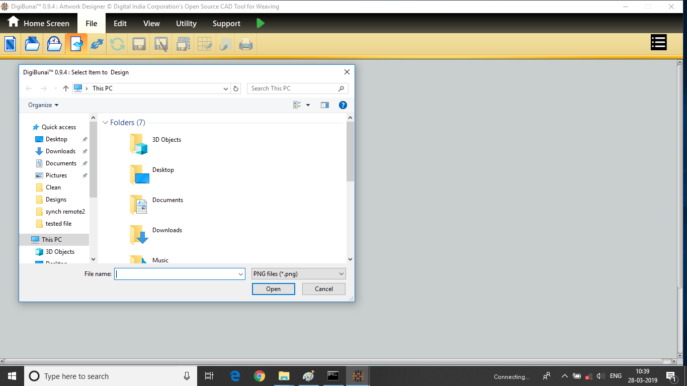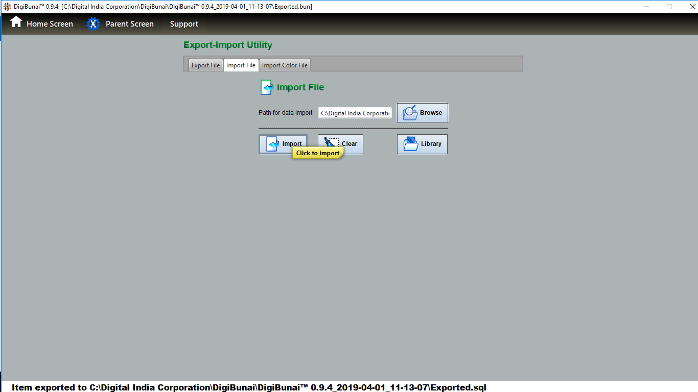 User wants to import different library (artwork, fabric weave, and colour) in DigiBunai by selecting and clicking import button (browse and import) in utility under utility module.