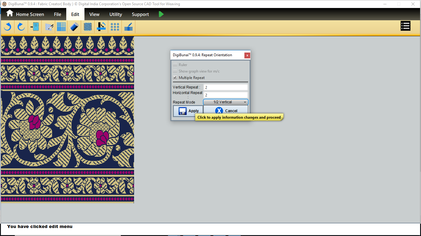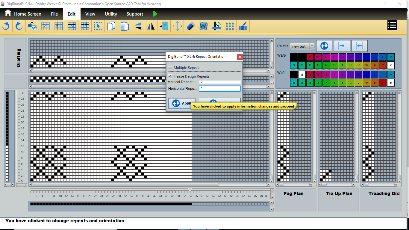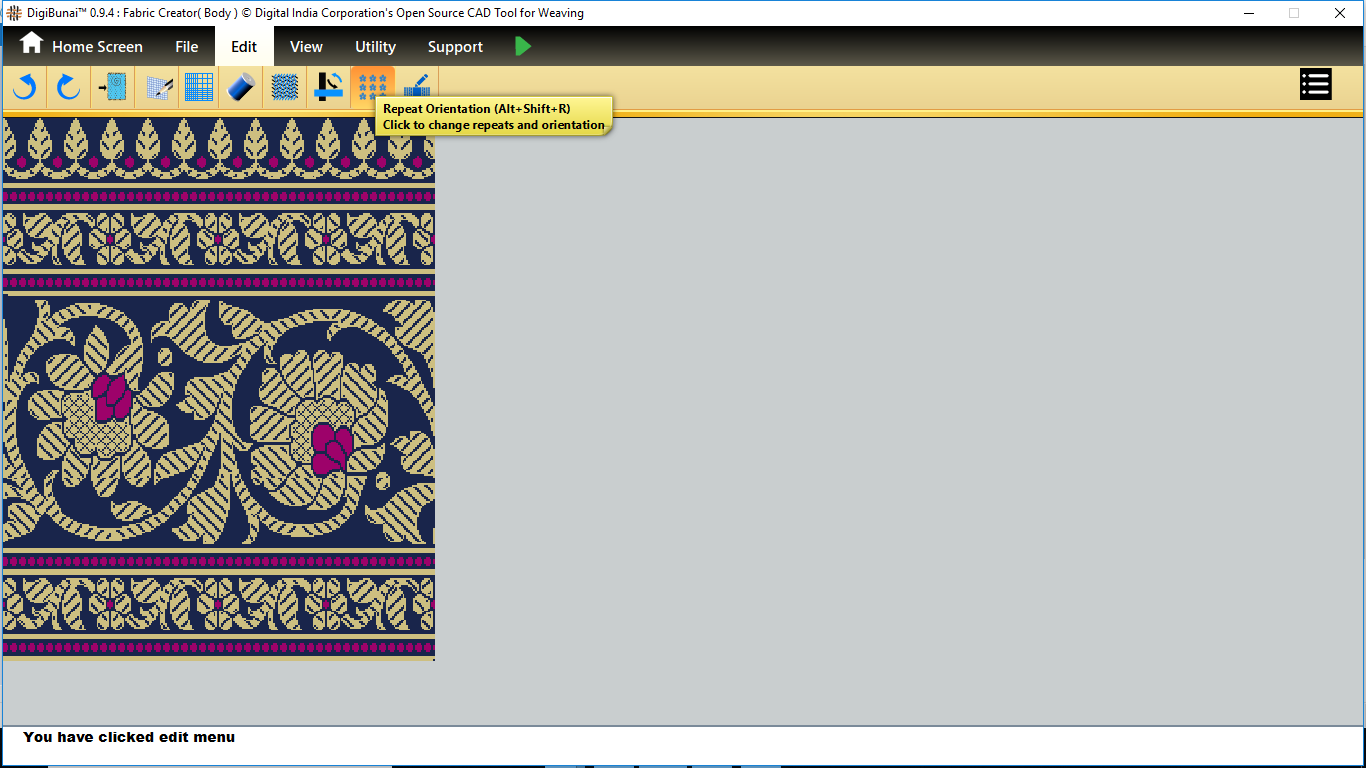 User want to repeat design by clicking repeat orientation button in edit menu under Dobby Weave.