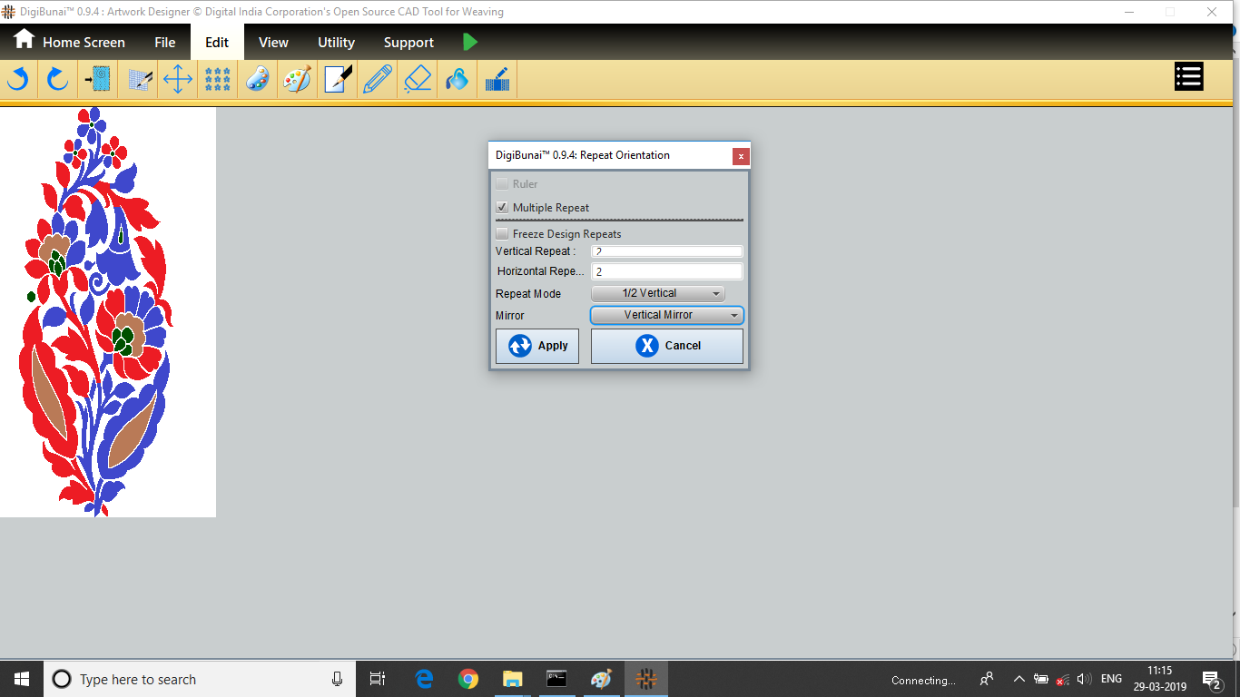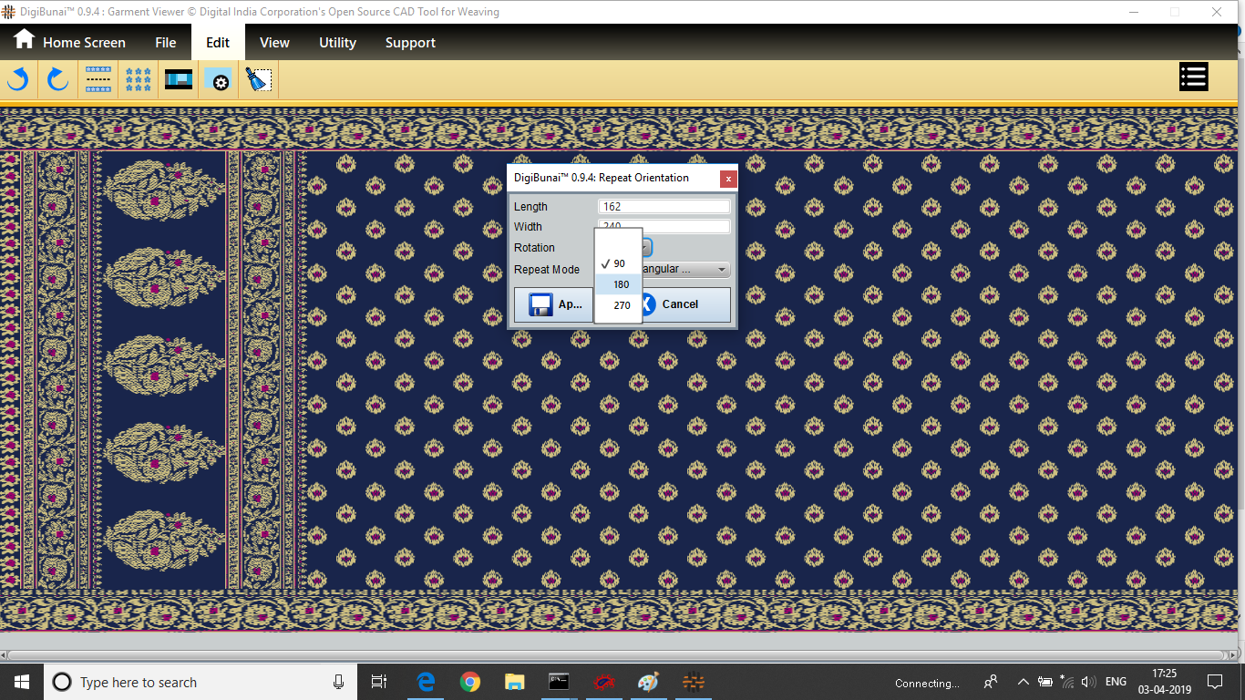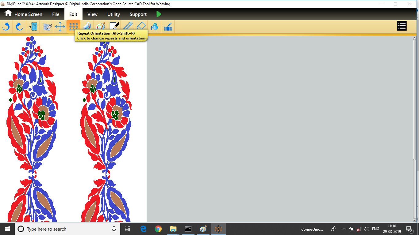 User want to repeat design by clicking repeat orientation button in edit menu under Dobby Weave.