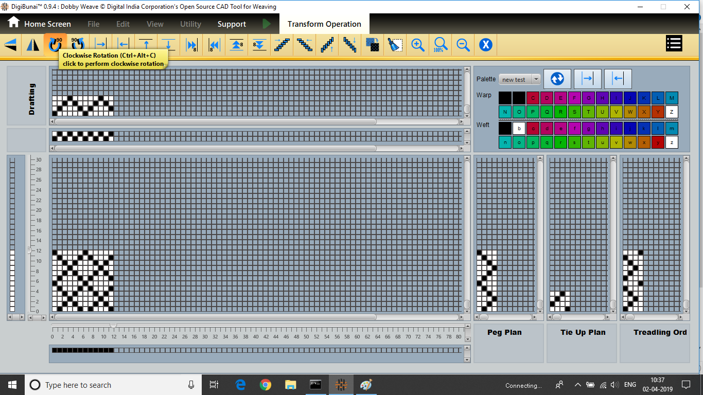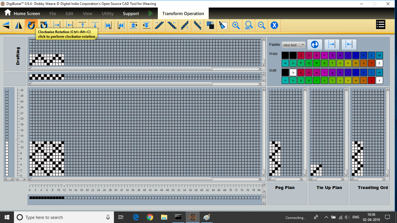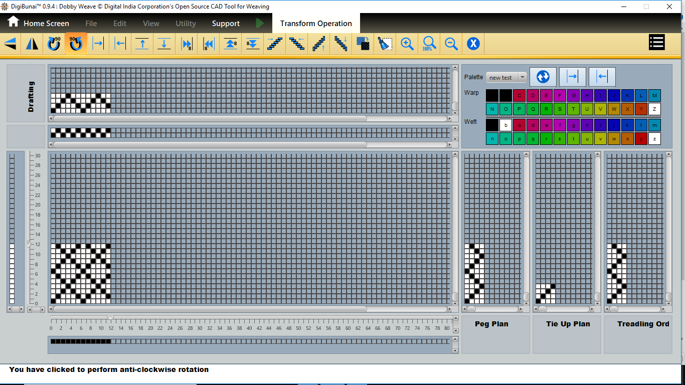 User wants to rotate weave clockwise and anticlockwise direction by clicking clockwise and anticlockwise button in transform operation under Dobby Weave.