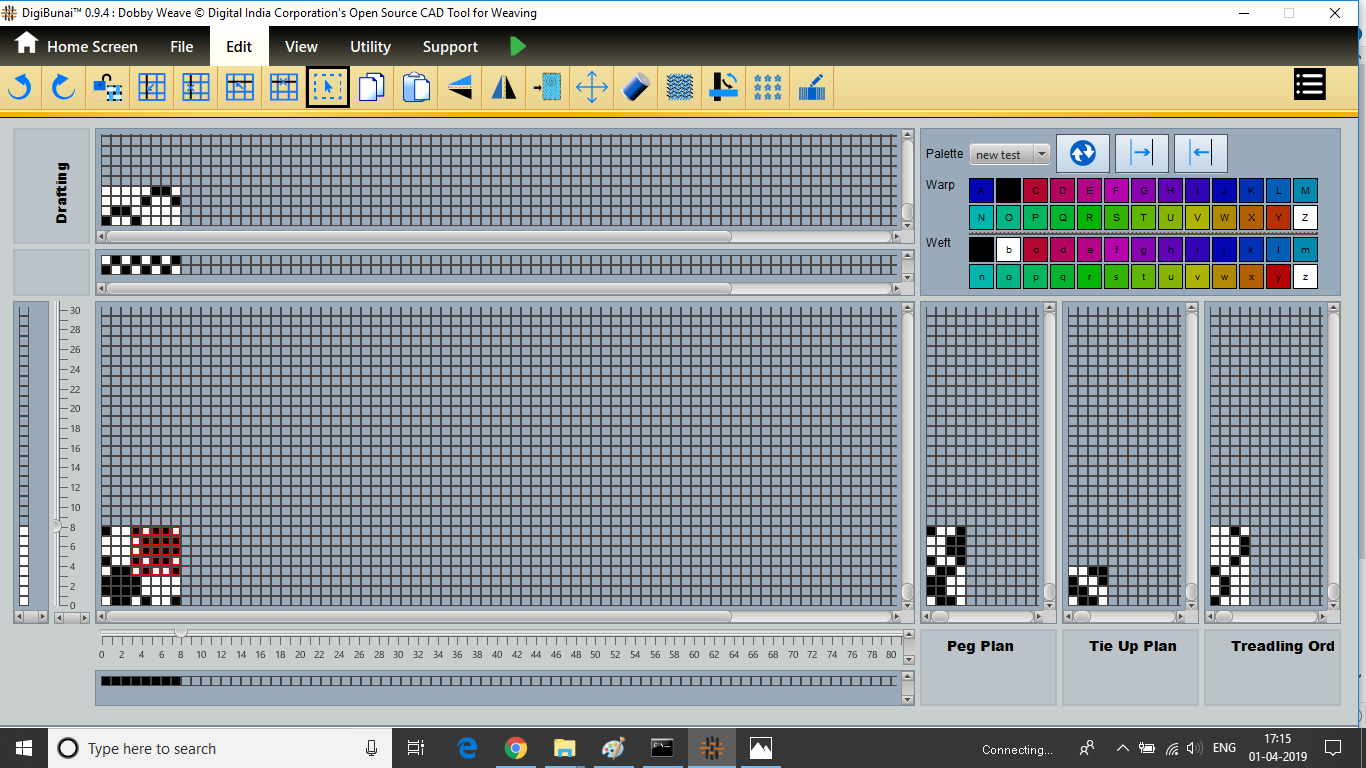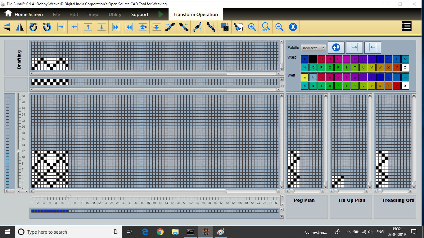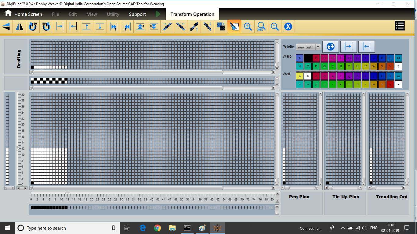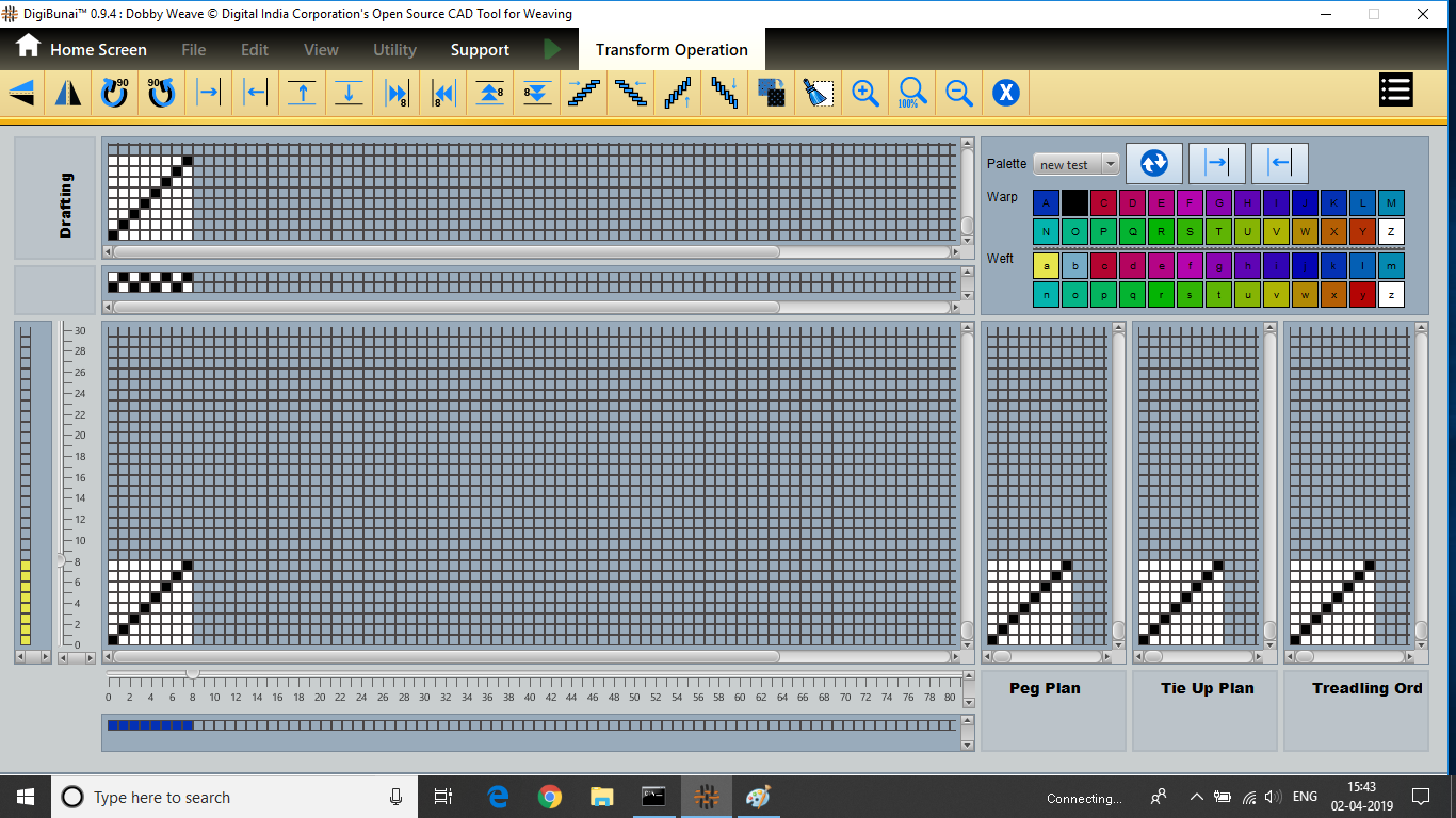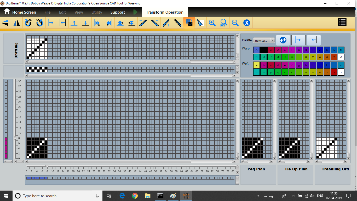 Dobby Weave provides facility create weave, edit weave, move, print weave, rotate, mirror, tilting and inverting weave. Which can be help for fabric view and digital graph.