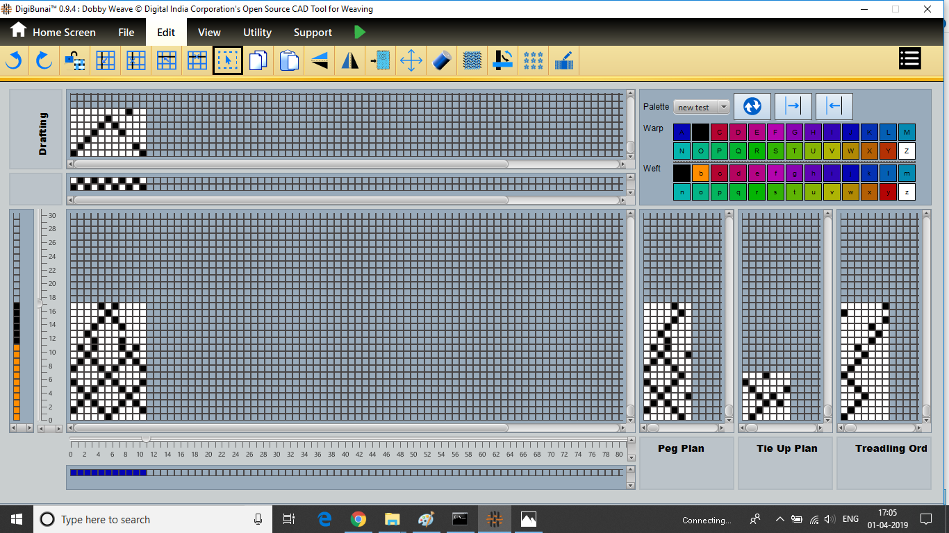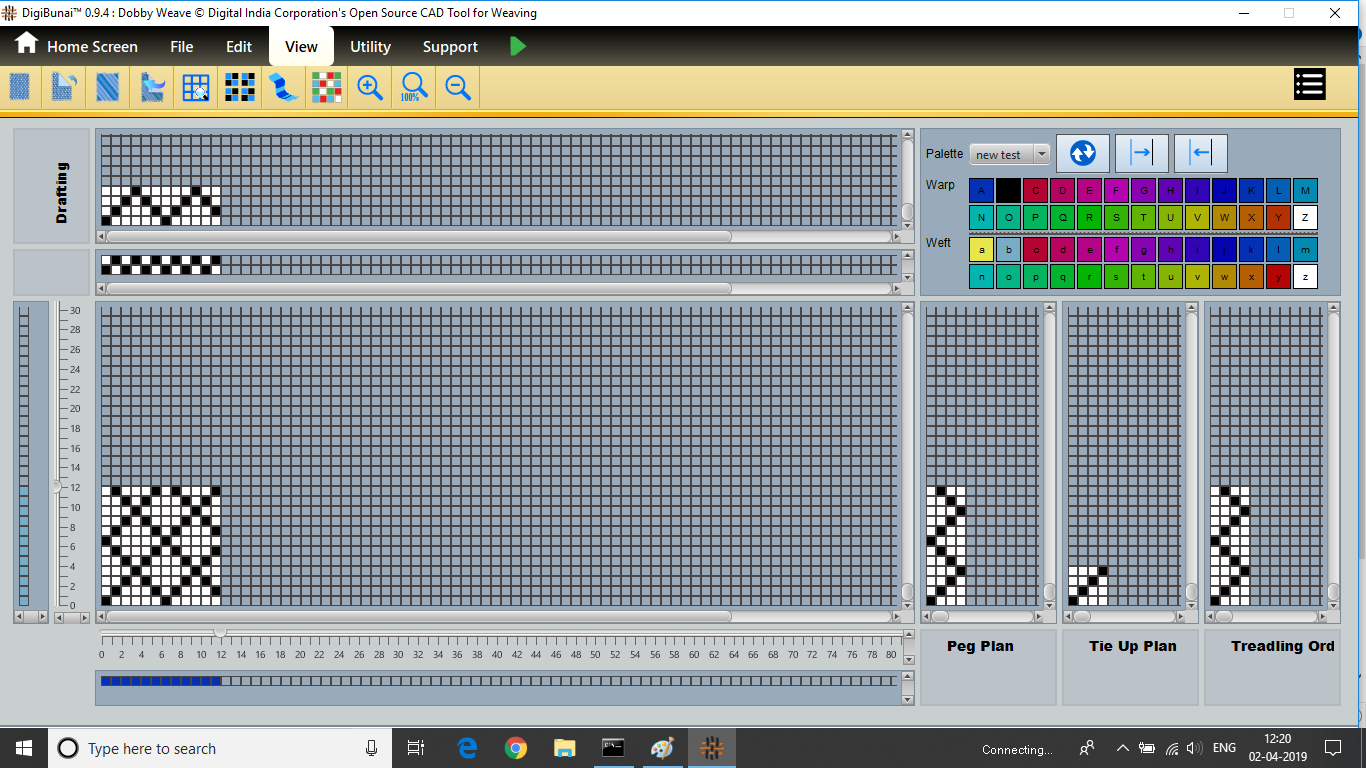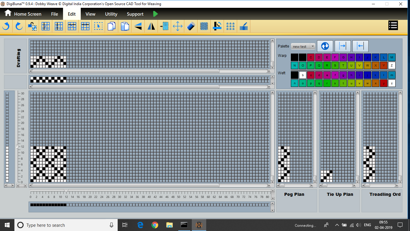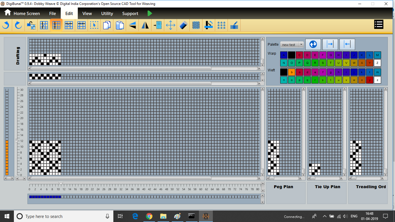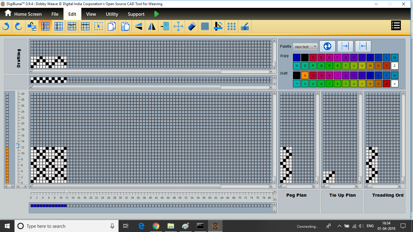 Dobby Weave provides facility create weave, edit weave, move, print weave, rotate, mirror, tilting and inverting weave. Which can be help for fabric view and digital graph.