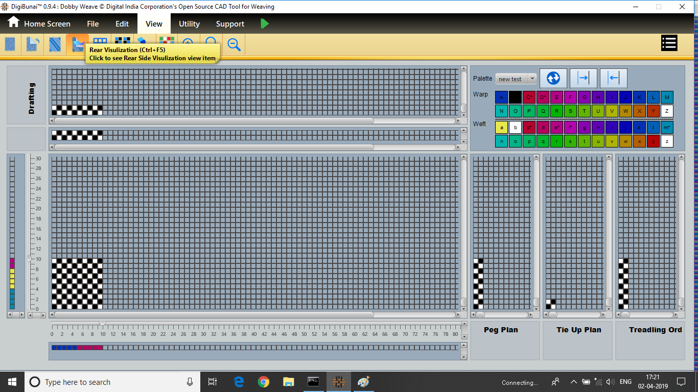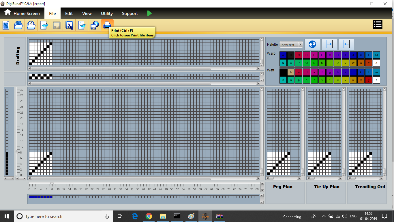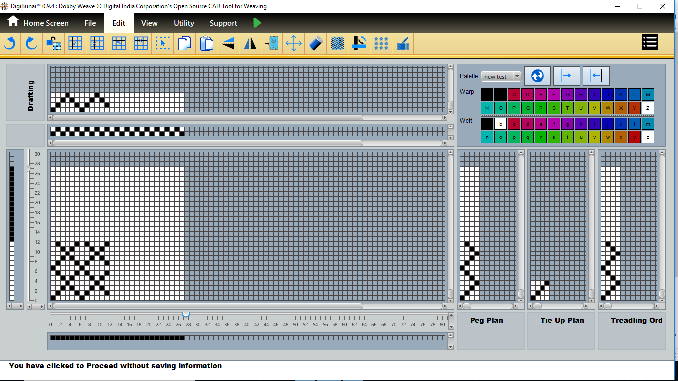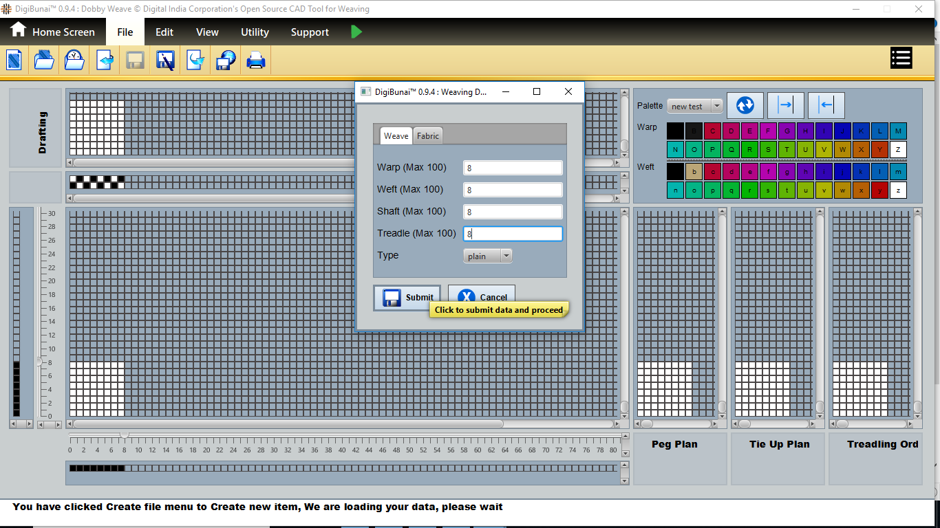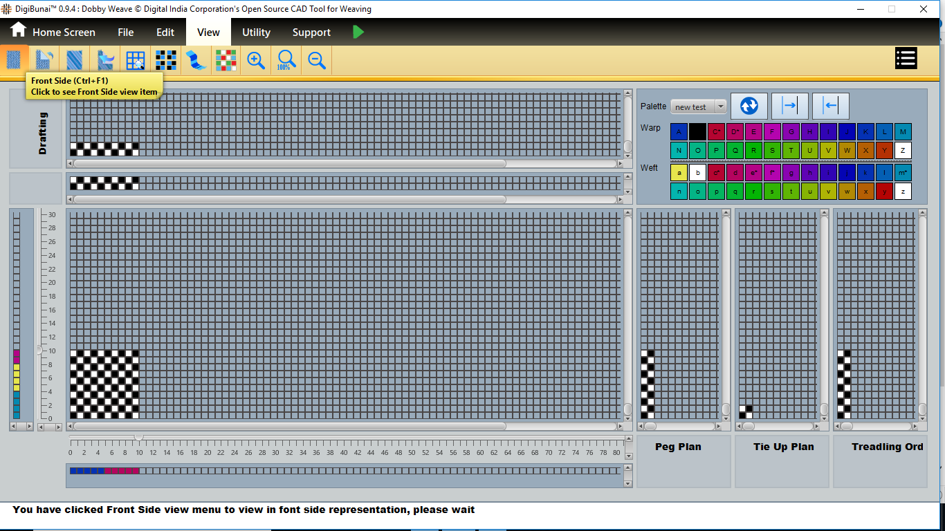 User wants to see pegplan & tieup of weave design by creating design with drafting and treadling sequence in file menu under Dobby Weave.