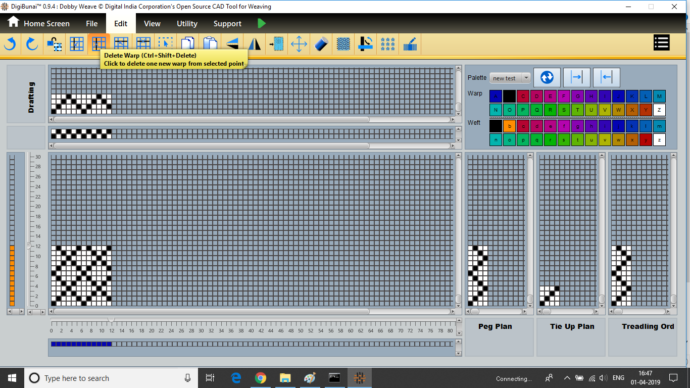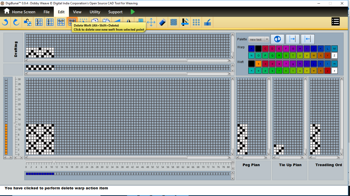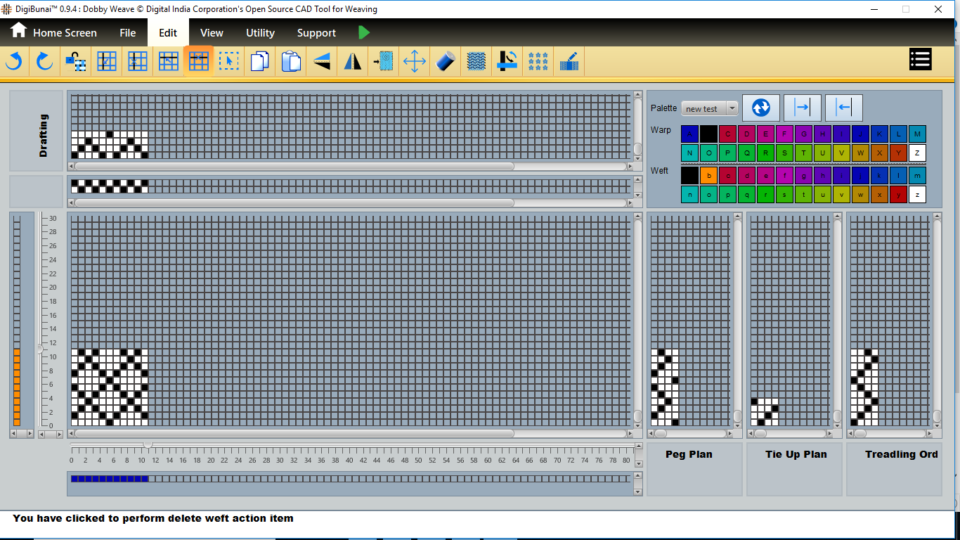 User want to delete warp/weft in design by clicking delete warp/weft button in edit menu under Dobby Weave.