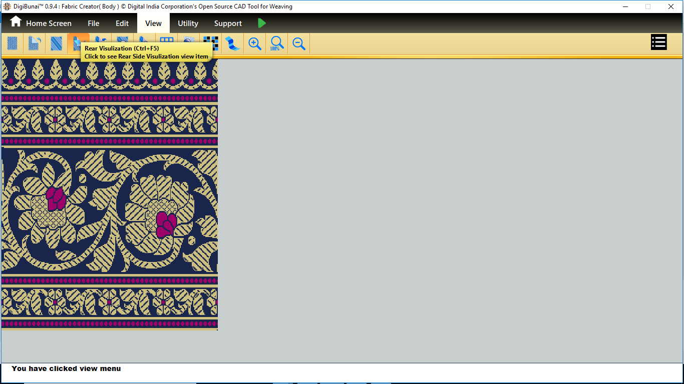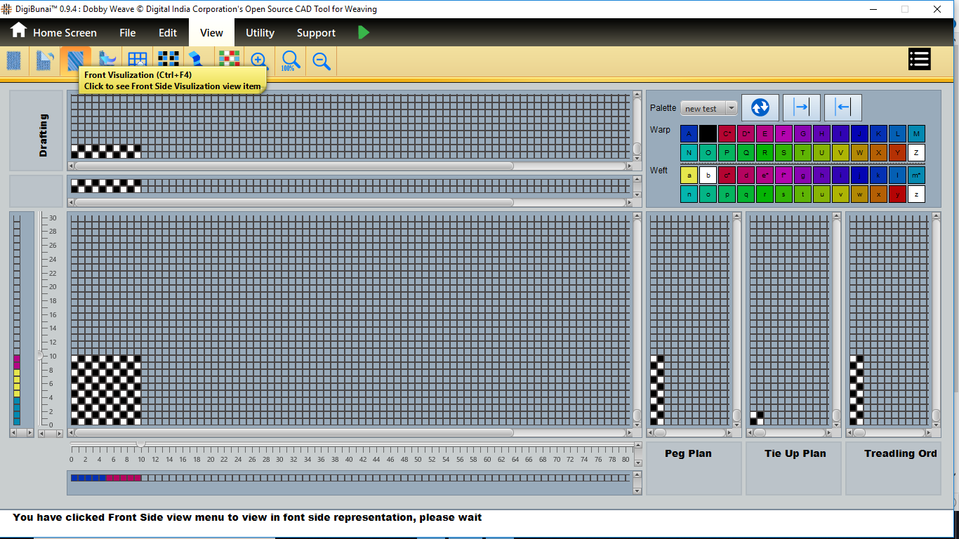 User wants to see front side, rear side, front visulization and rear visulization by clicking front side, rear side, front visulization and rear visulization button in view menu under Dobby Weave.