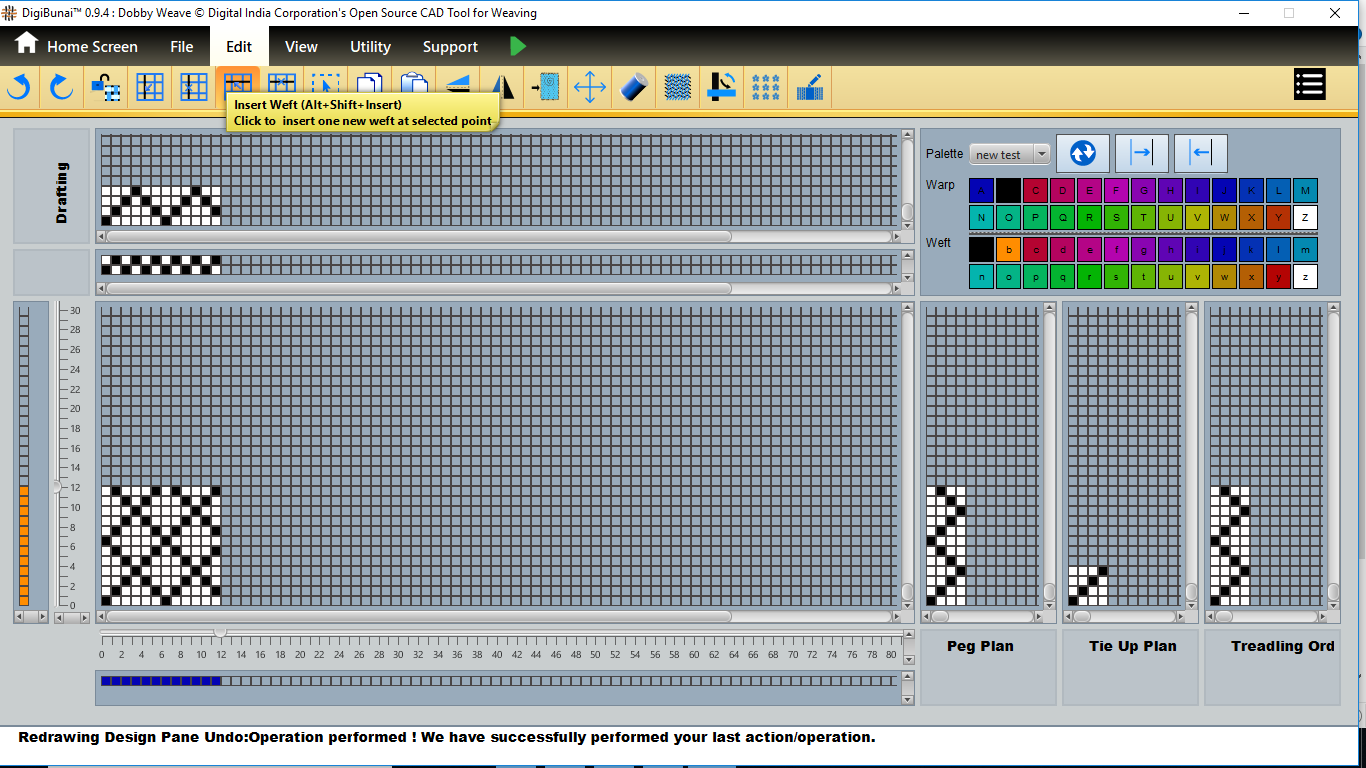 User want to insert warp/weft in design by clicking insert warp/ insert weft button in edit menu under Dobby Weave.
