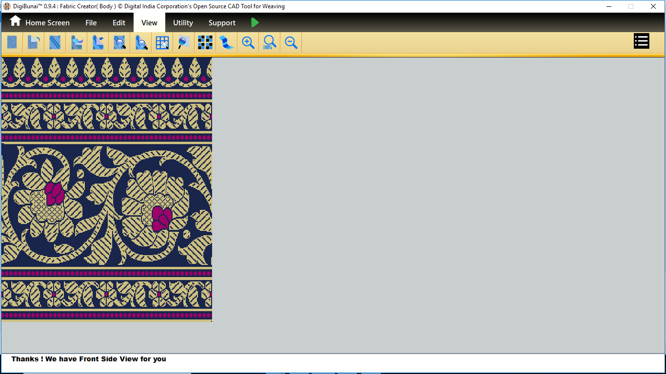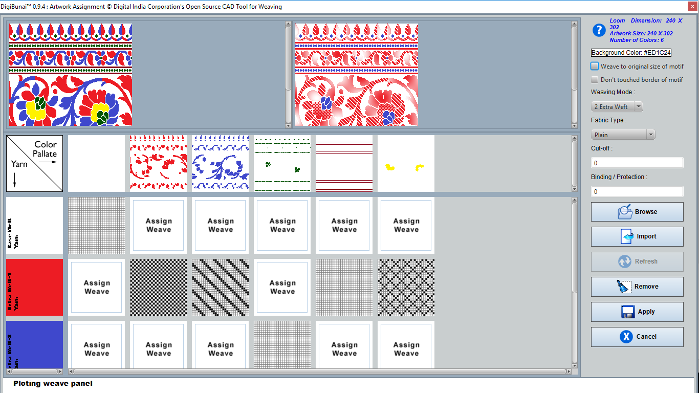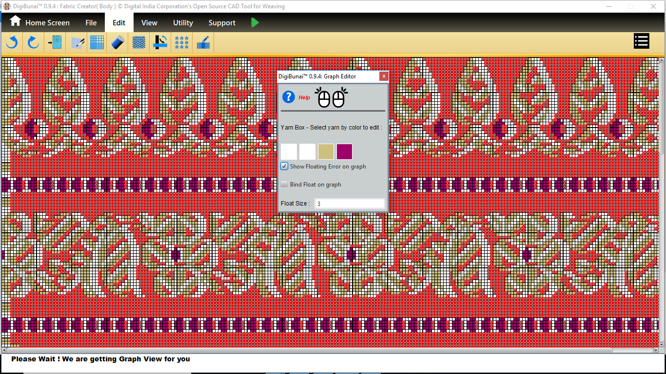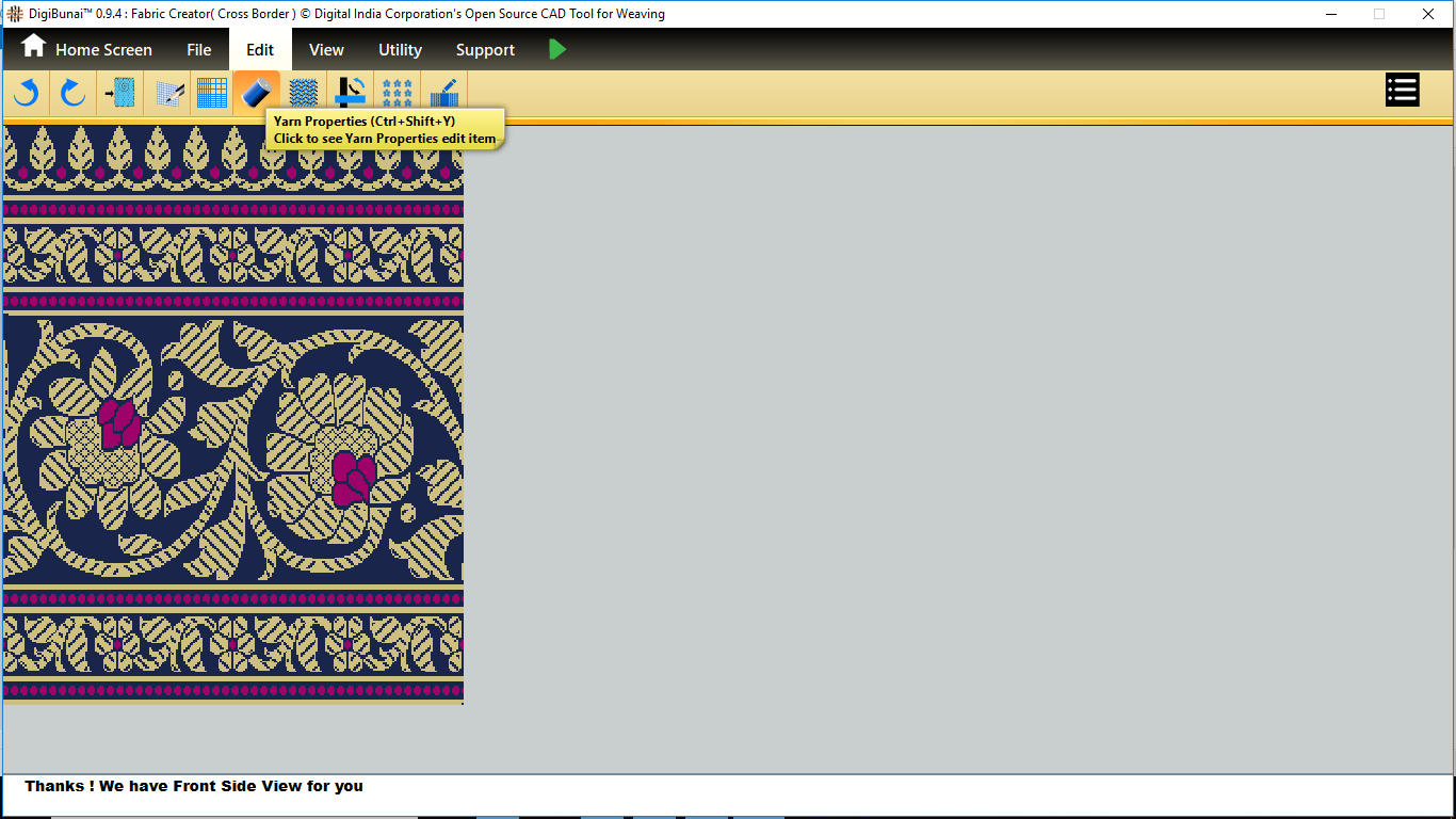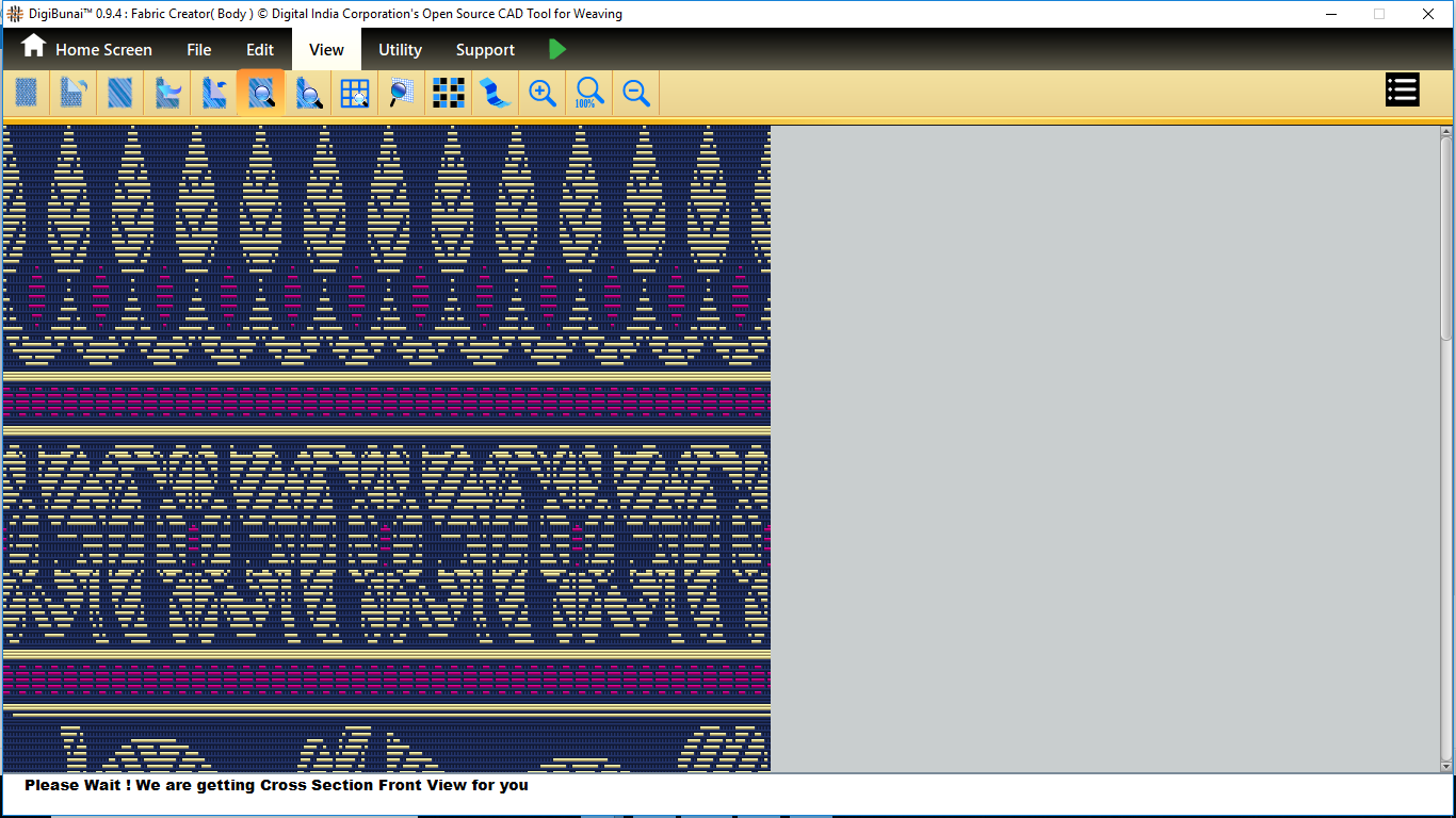 Fabric Creator provides Create fabric, edit weaves, Create thread pattern in base fabric. Weave using extra wefts Facility to change yarn properties. Different view of the fabric (Front, Back, Flip).Create customizable graph of one repeat of fabric (Handloom Jacquard).
