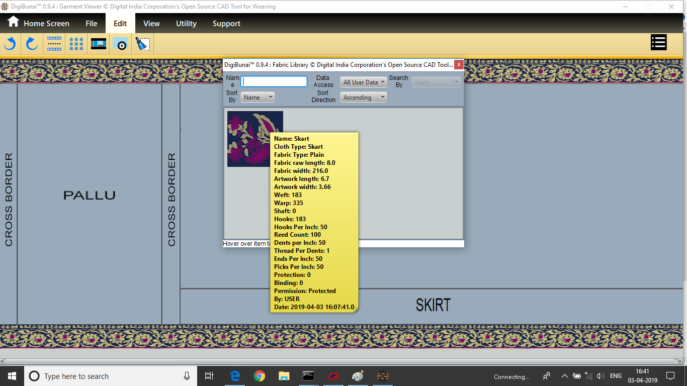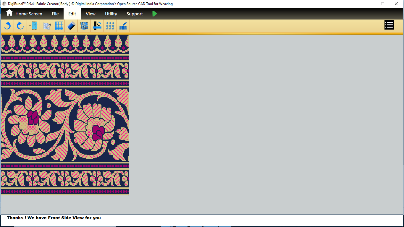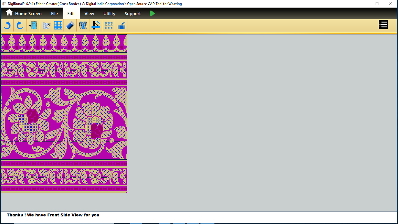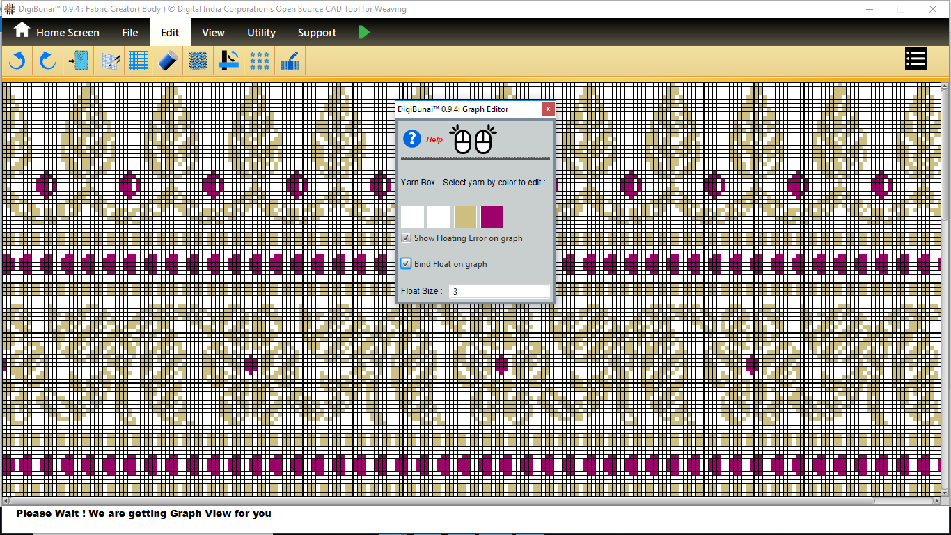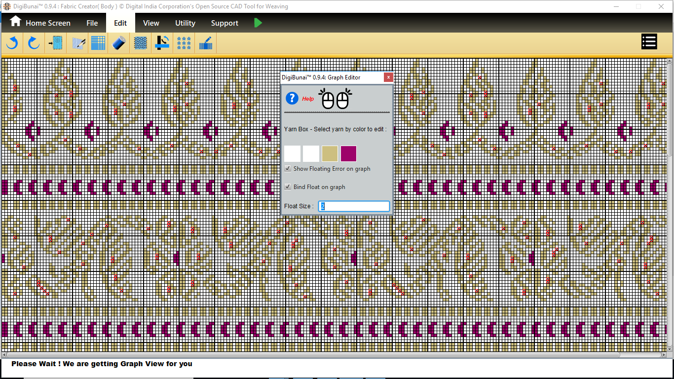 Fabric Creator provides Create fabric, edit weaves, Create thread pattern in base fabric. Weave using extra wefts Facility to change yarn properties. Different view of the fabric (Front, Back, Flip).Create customizable graph of one repeat of fabric (Handloom Jacquard).