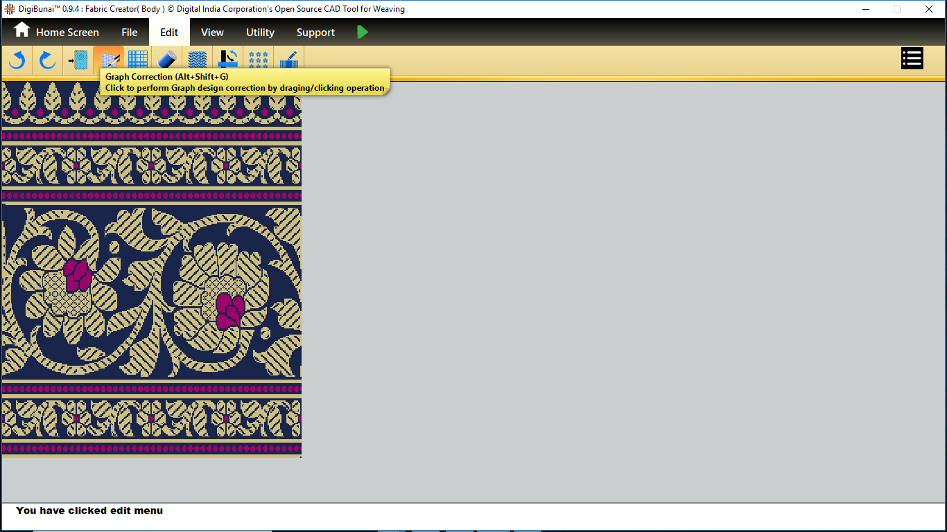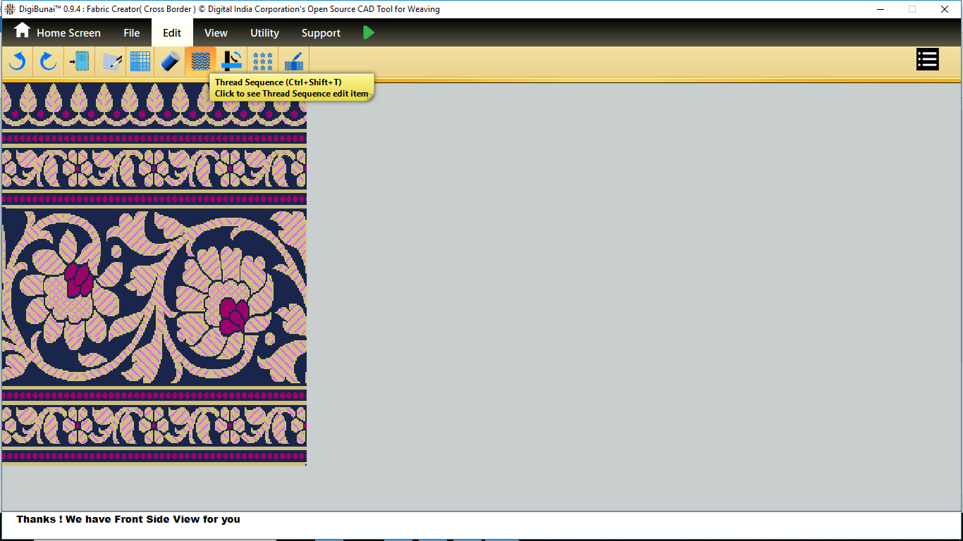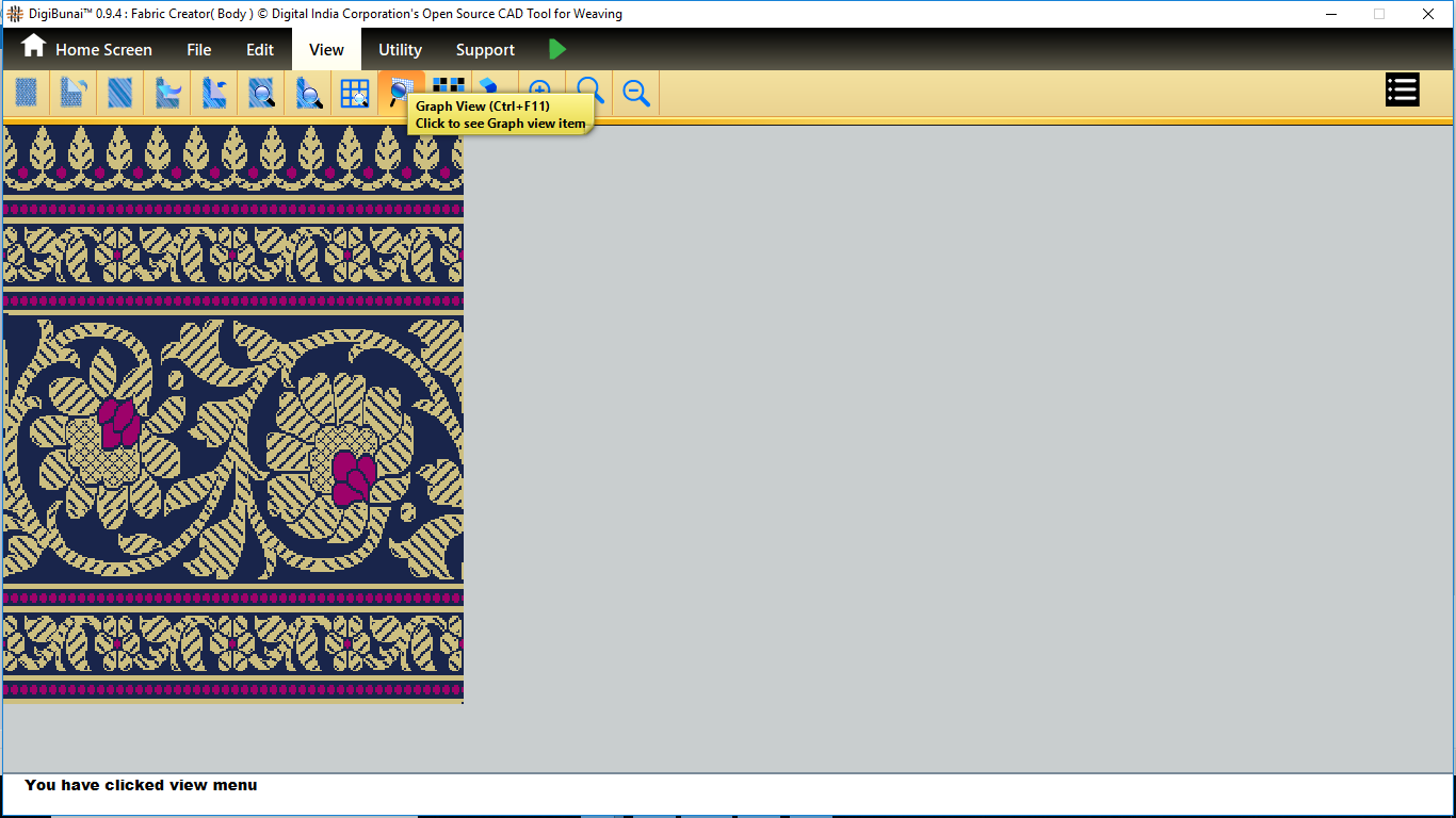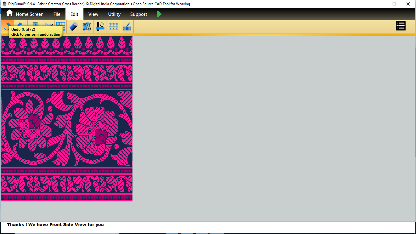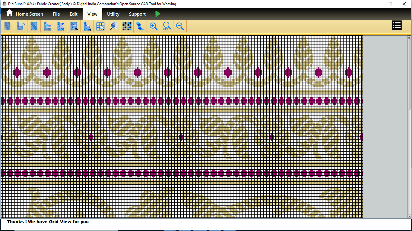 Fabric Creator provides Create fabric, edit weaves, Create thread pattern in base fabric. Weave using extra wefts Facility to change yarn properties. Different view of the fabric (Front, Back, Flip).Create customizable graph of one repeat of fabric (Handloom Jacquard).