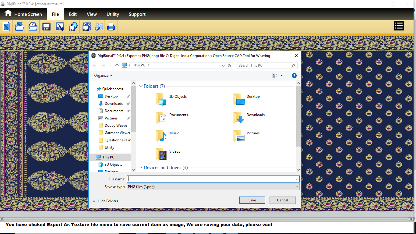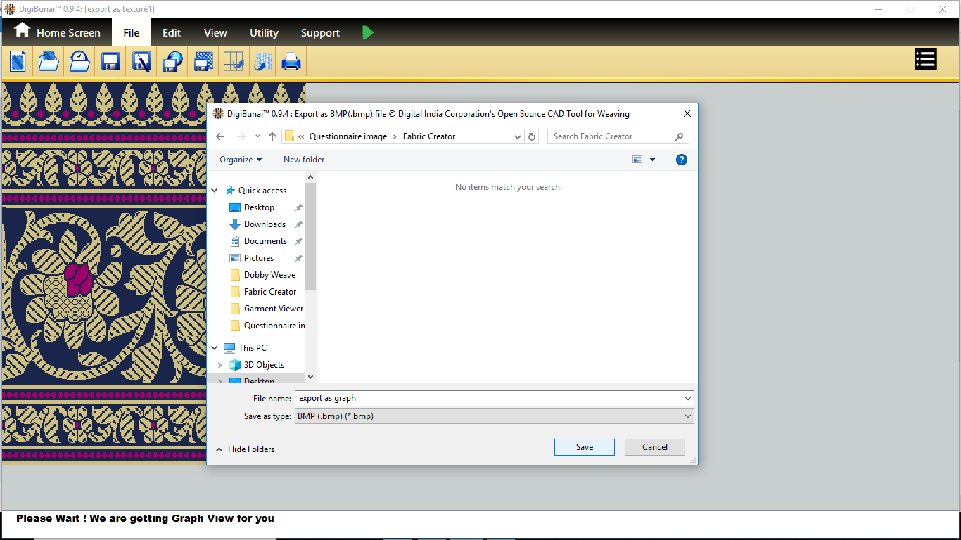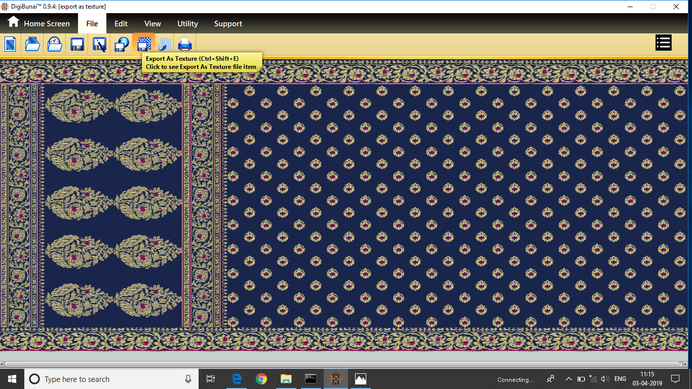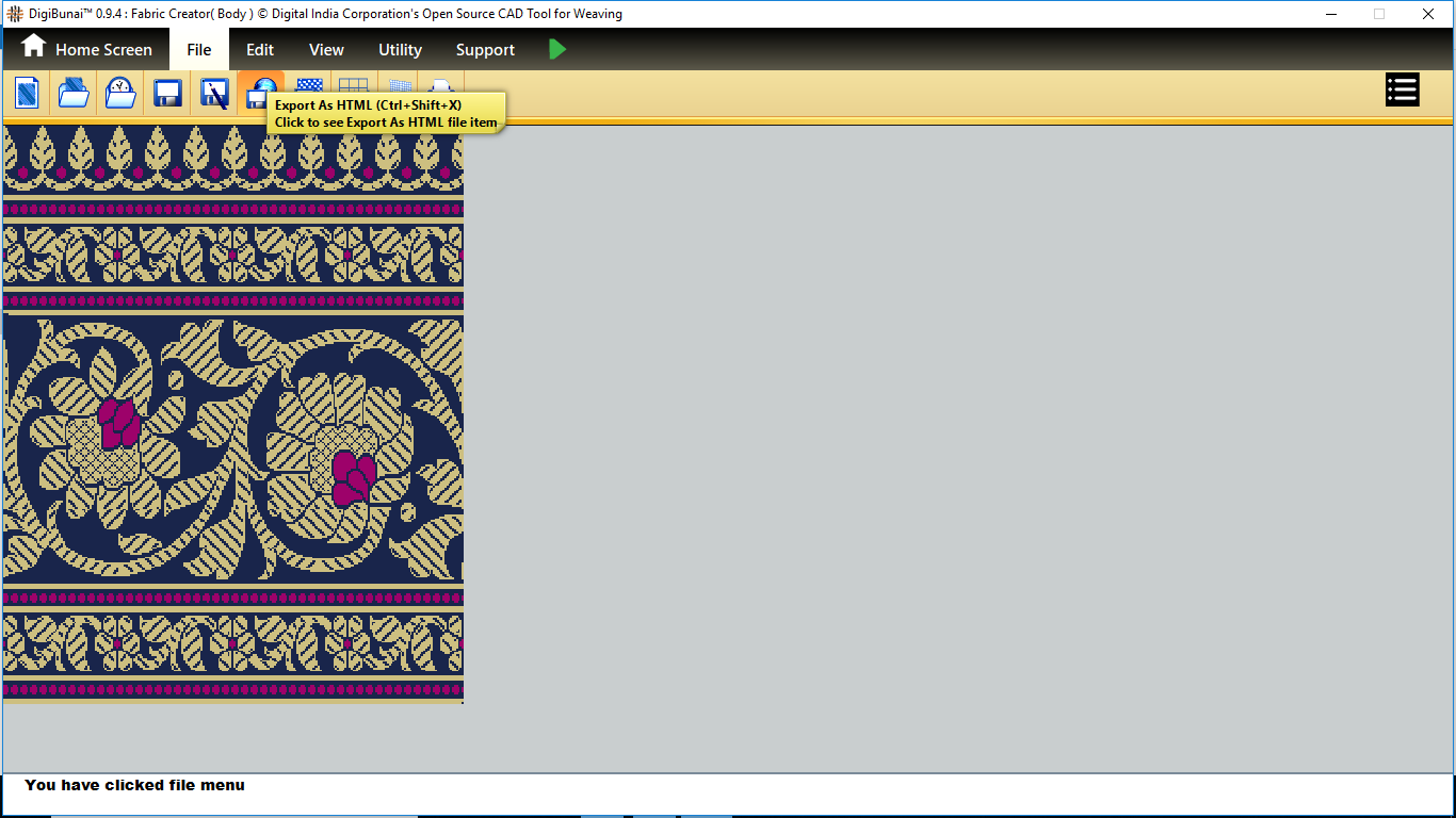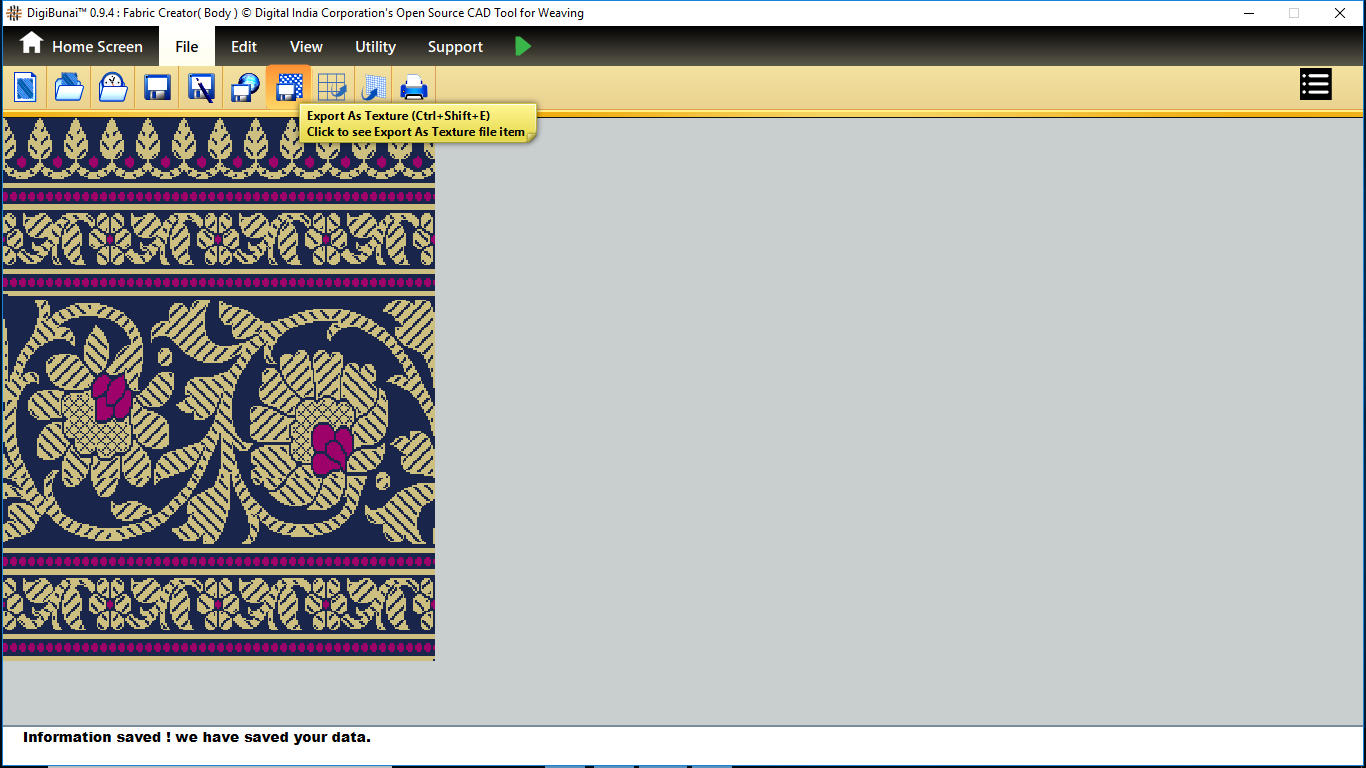 User wants to export fabric(saree layout) by clicking export as texture button in file menu under Garment Viewer.