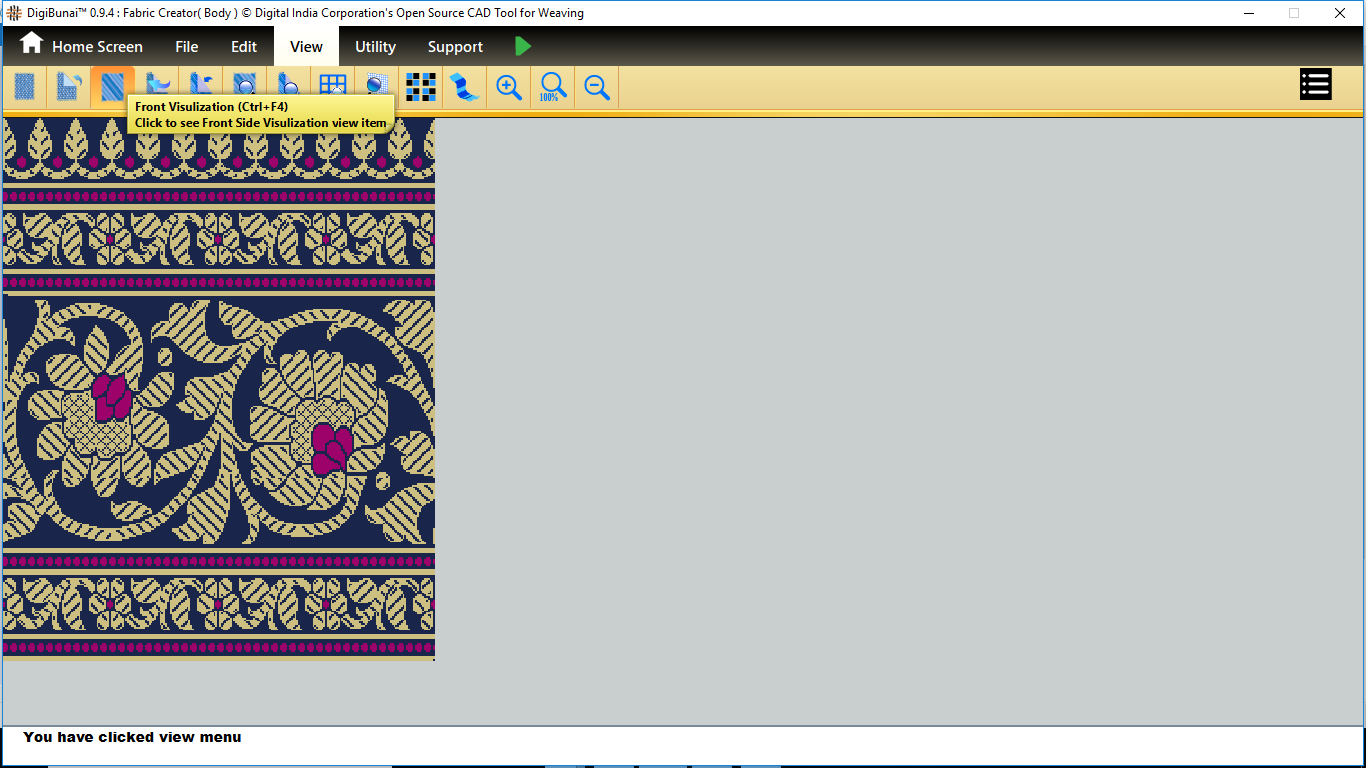 User wants to see clear view of fabric by clicking front visulization button in view menu under Fabric Creator.
