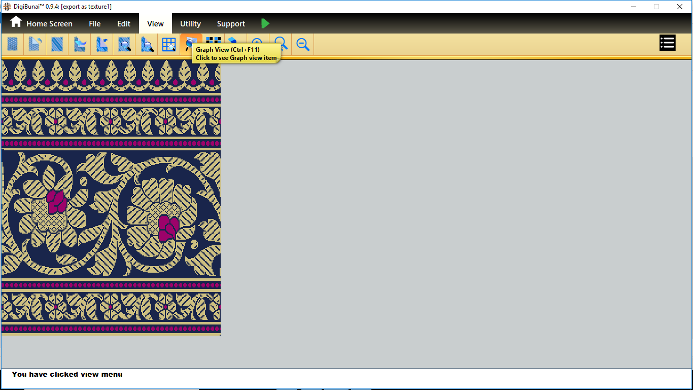 User wants to see tiled view, grid view , simulation and colorways of weave by clicking tiled view, grid view , simulation and colorways button in view menu under Dobby Weave.