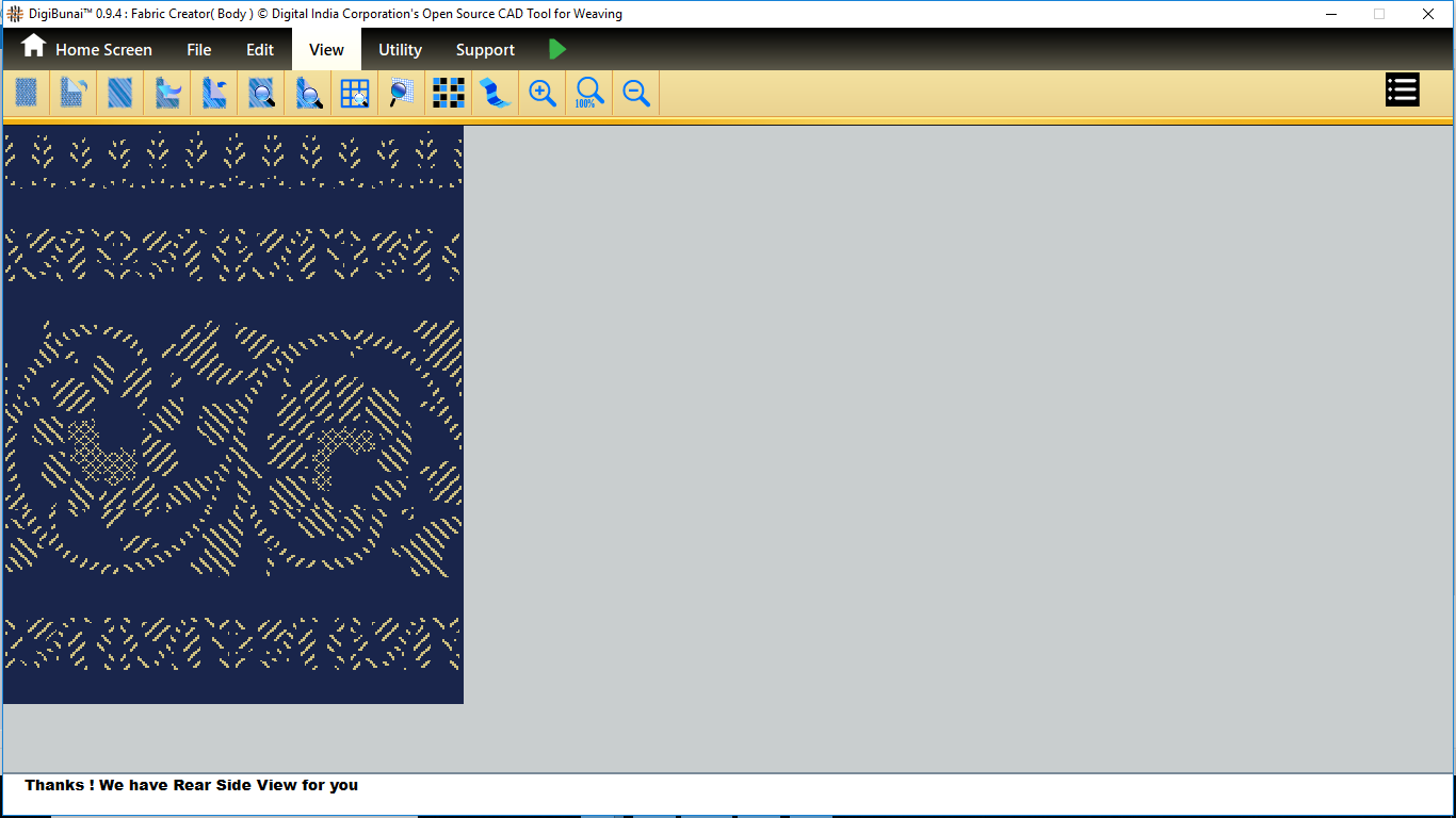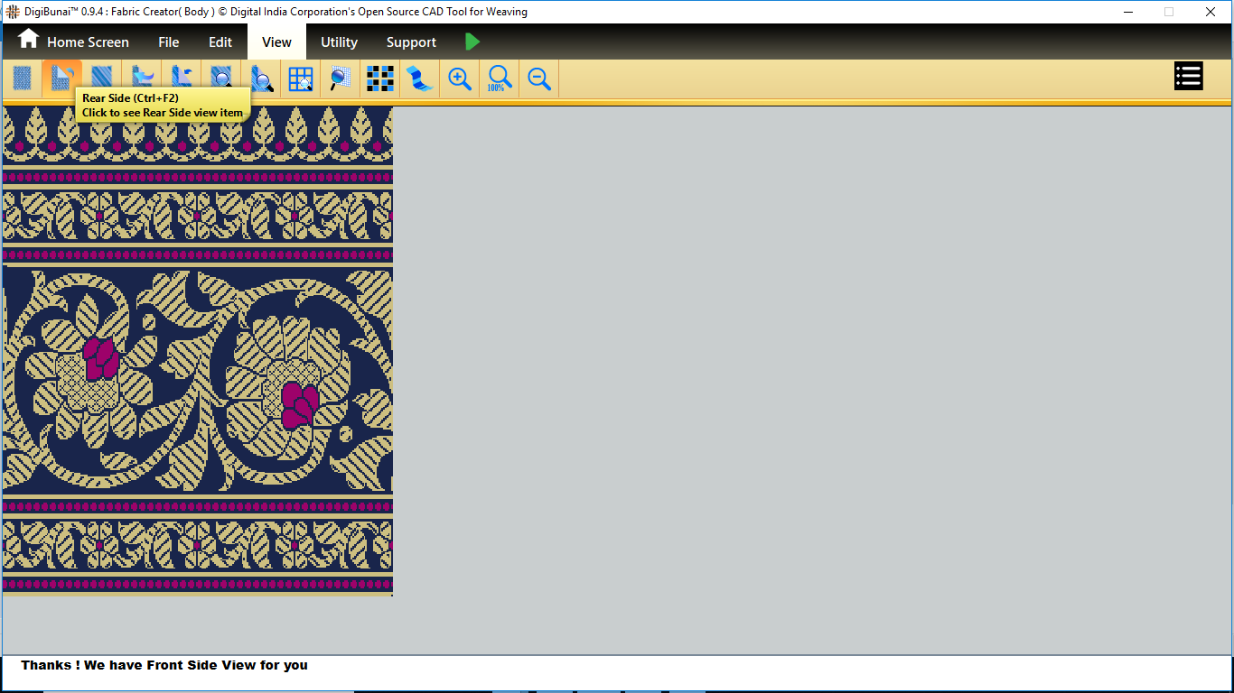 User want to see actual view and back side view by clicking front side view and rear side view in view menu under Fabric Creator.