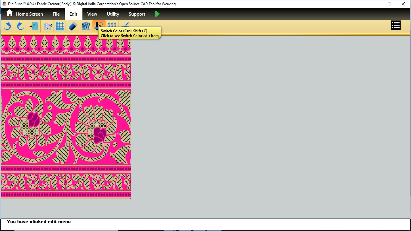 User wants to change switch colour (change colour warp to weft and weft to warp) by clicking switch colour button in edit menu under Fabric Creator.
