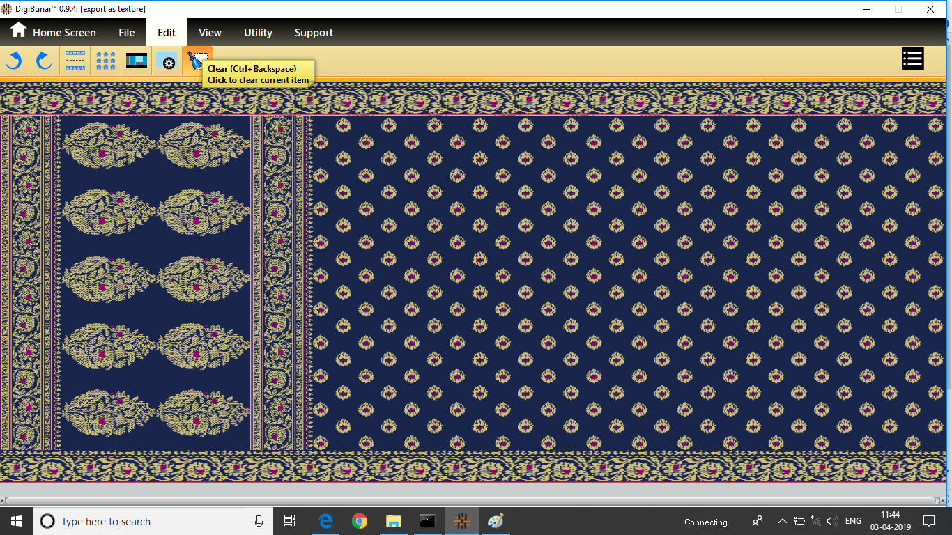 User wants to clear fabric (saree layout) by clicking clear button in edit menu under Garment Viewer.