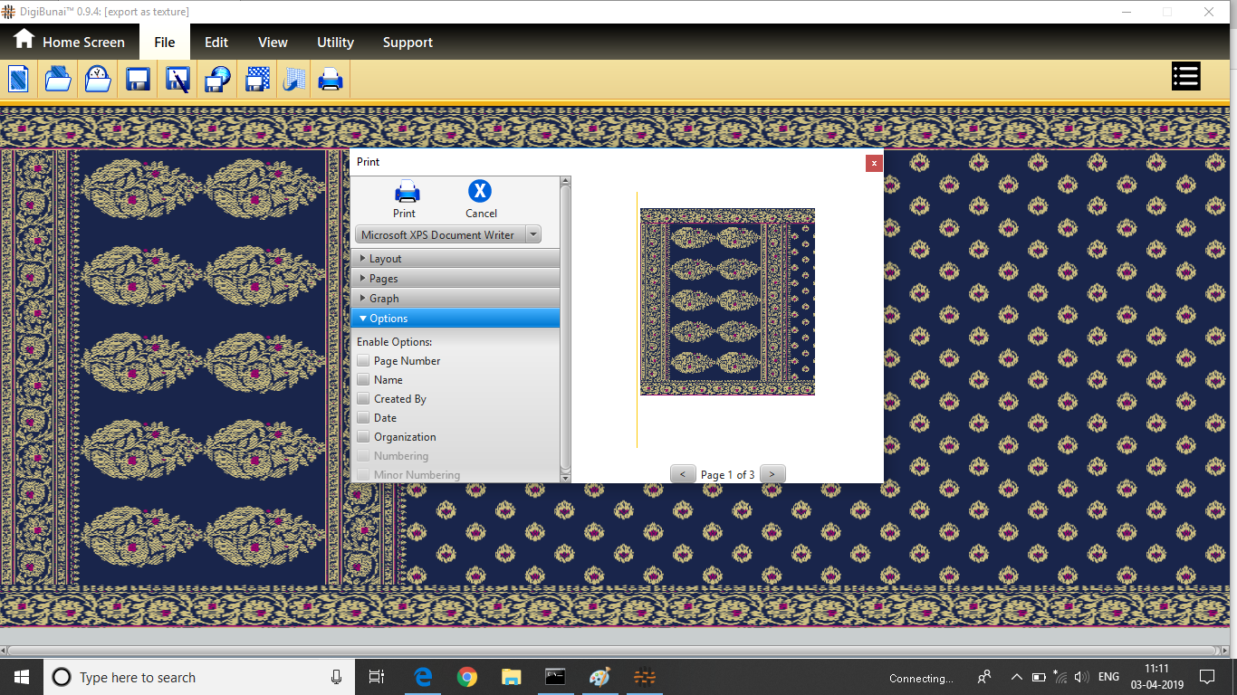 User wants to print fabric (saree layout) by clicking print texture button in file menu under Garment Viewer.