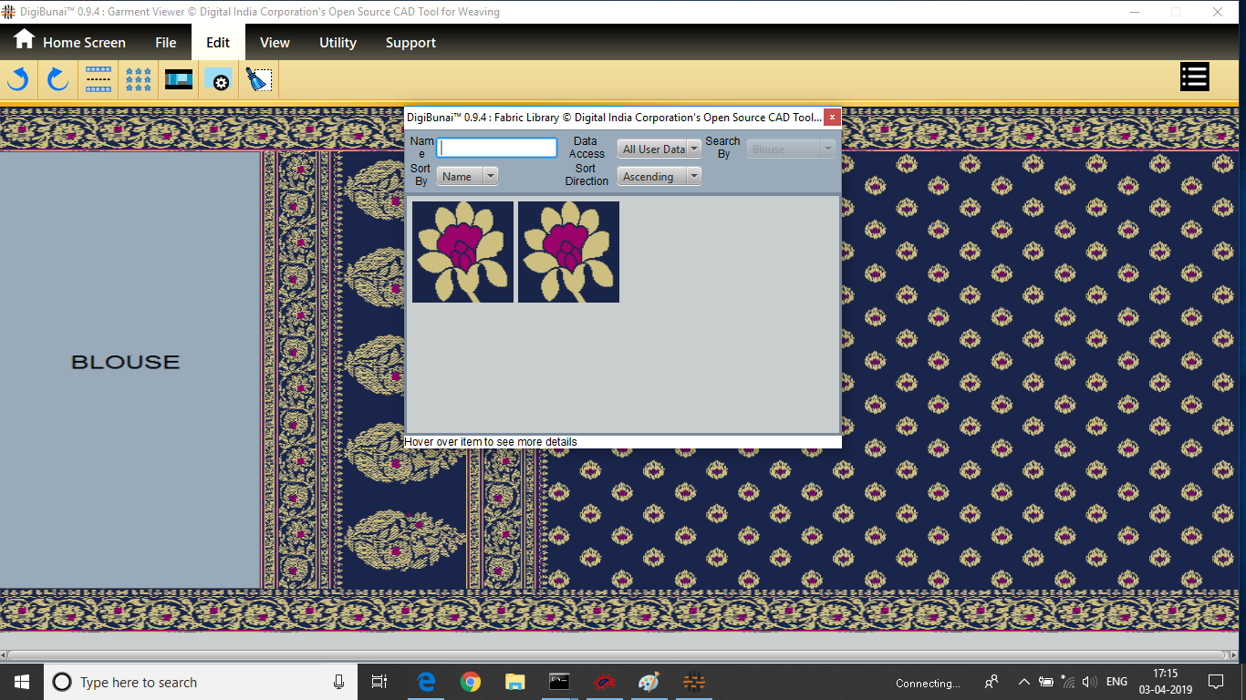 Garment Viewer provides to facility visualize the complete saree layout to get the end customer feedback before loading the looms.