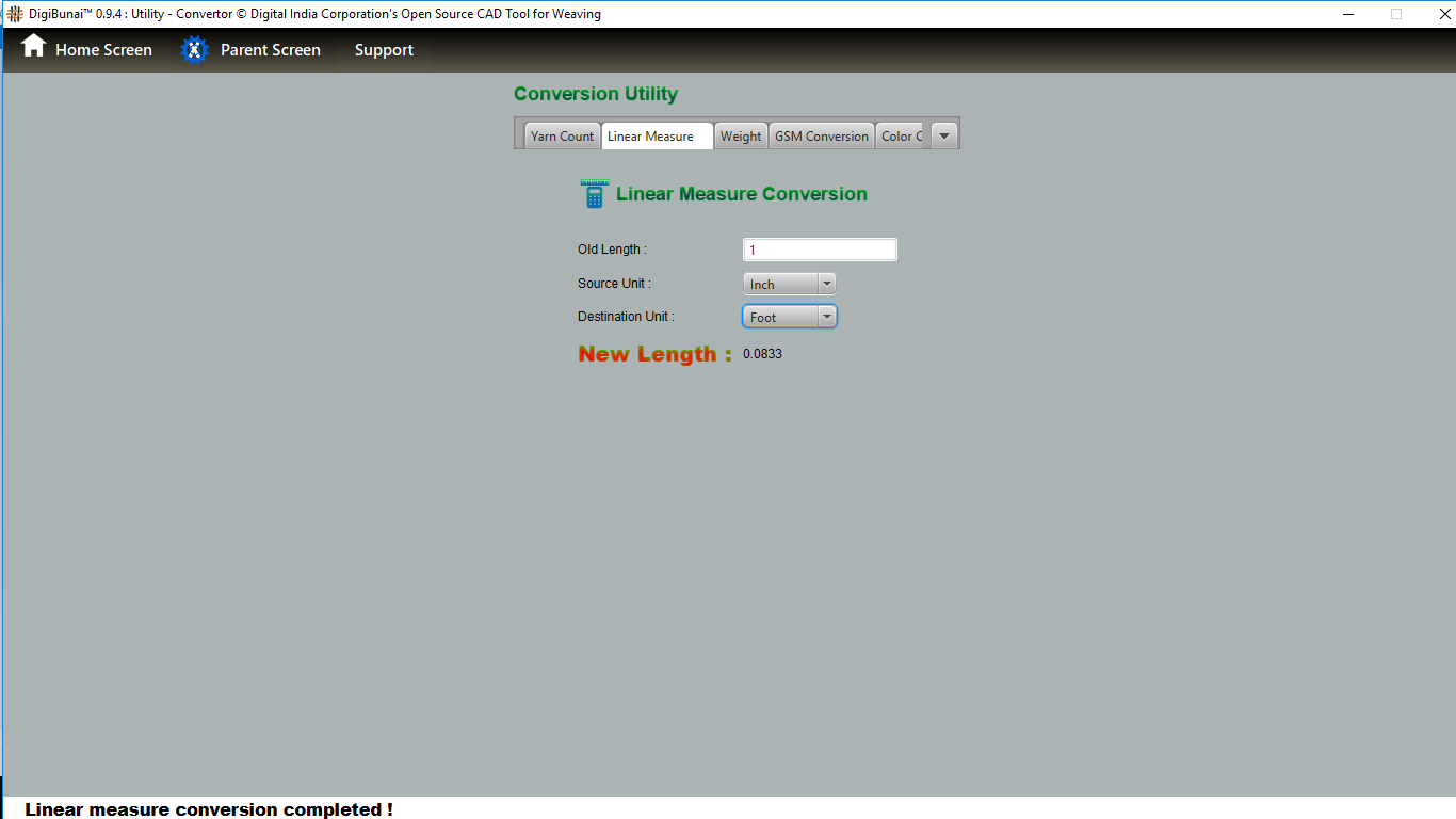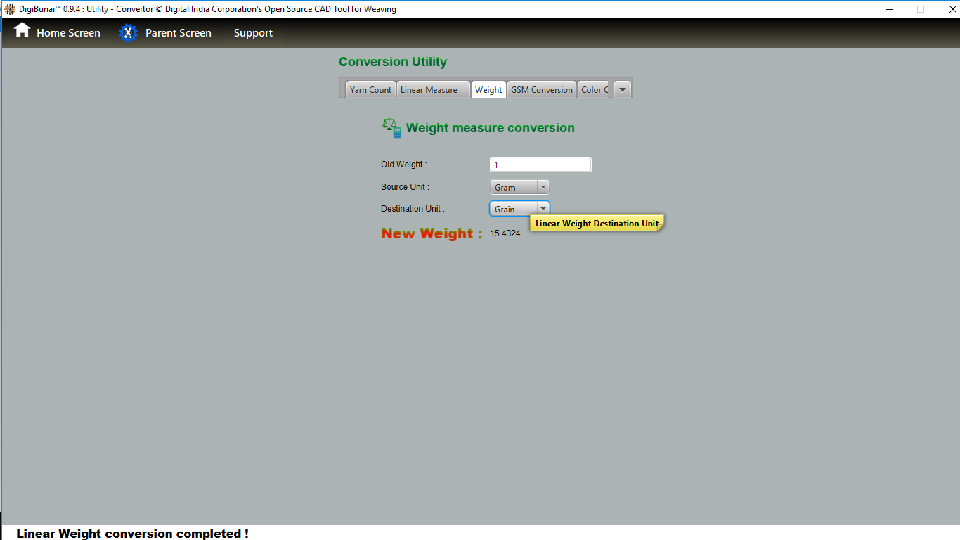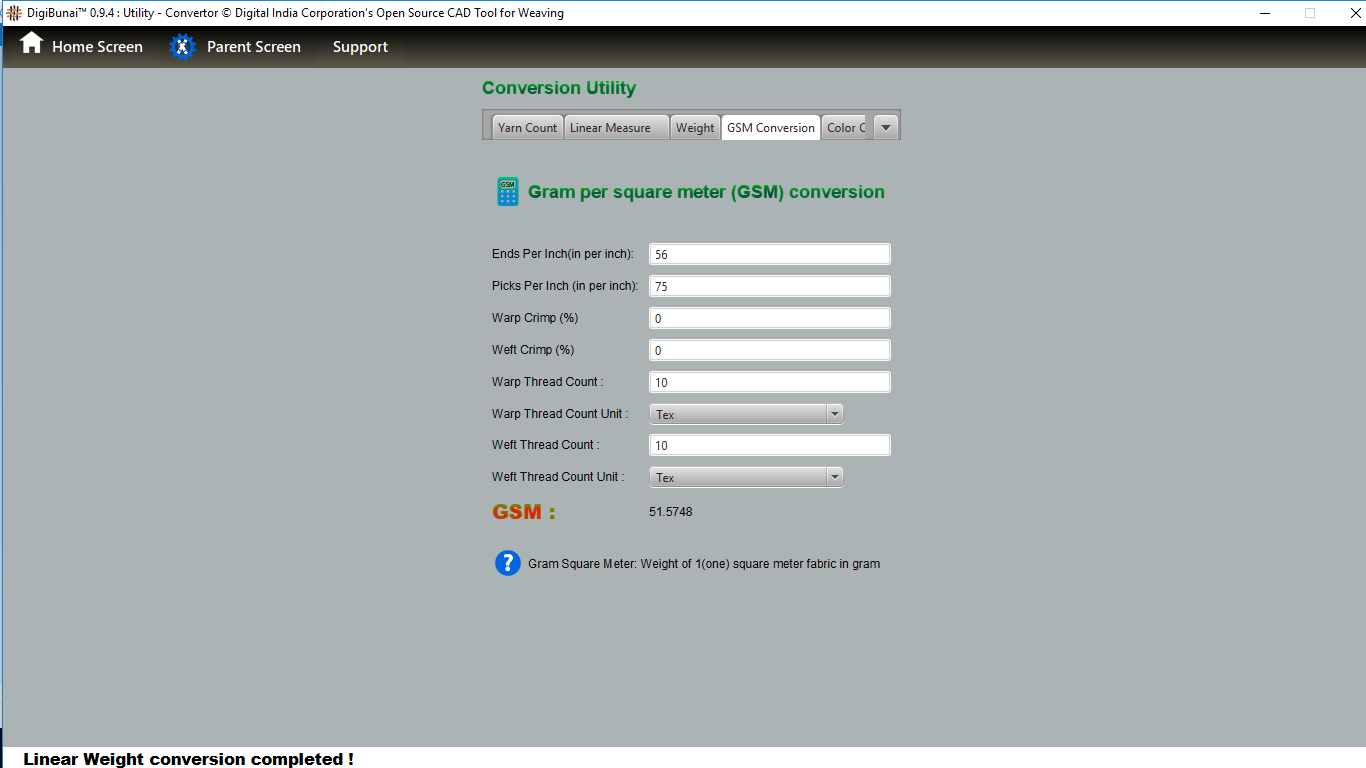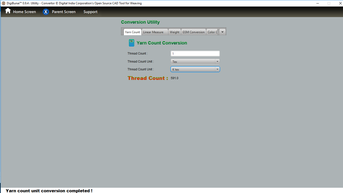User can wants thread count convert one unit other unit by selecting unit in yarn count conversion under utility.